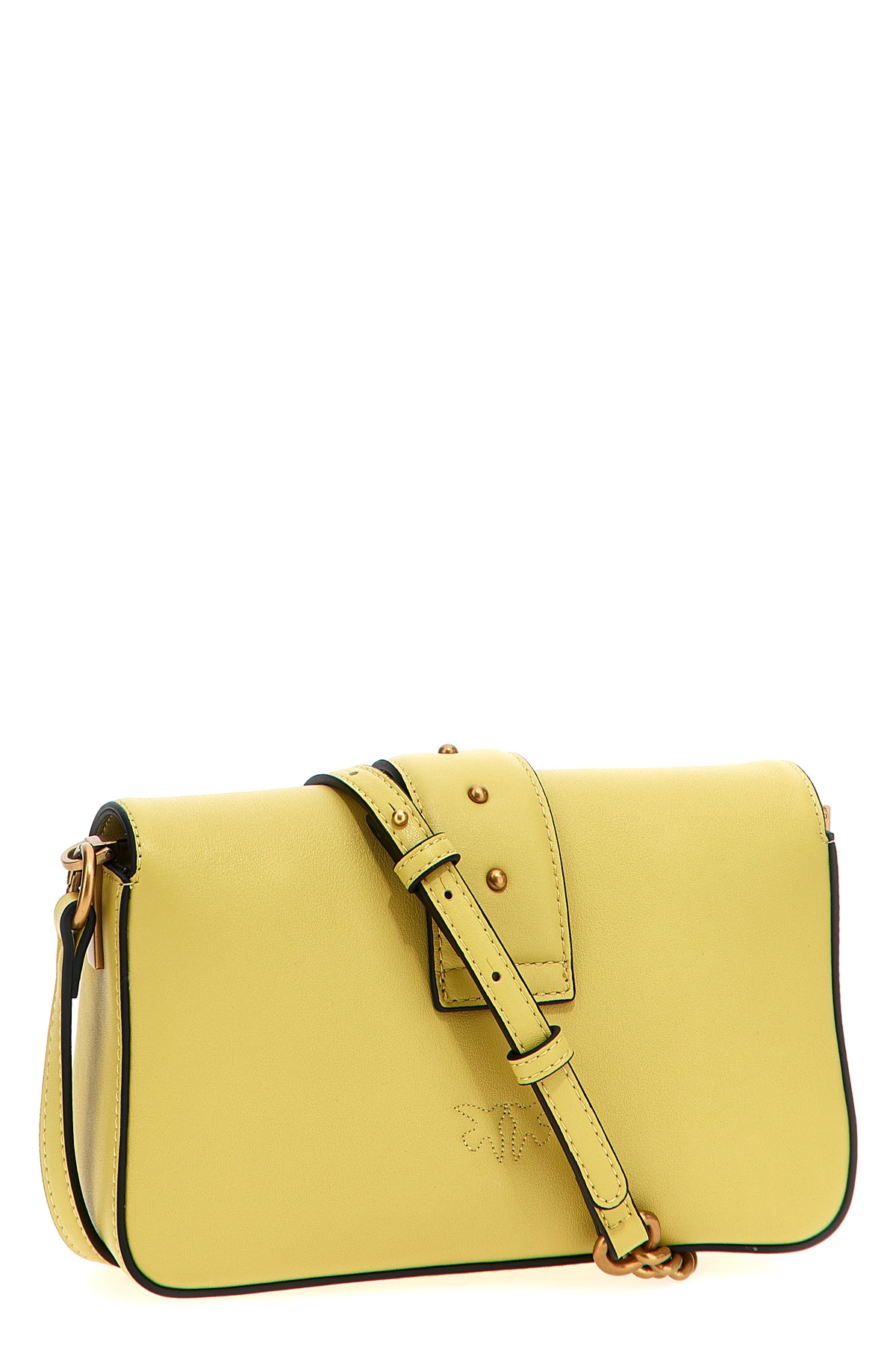 'Love One Mini' smooth leather crossbody bag, magnetic flap closure with metal logo hardware, removable shoulder strap.