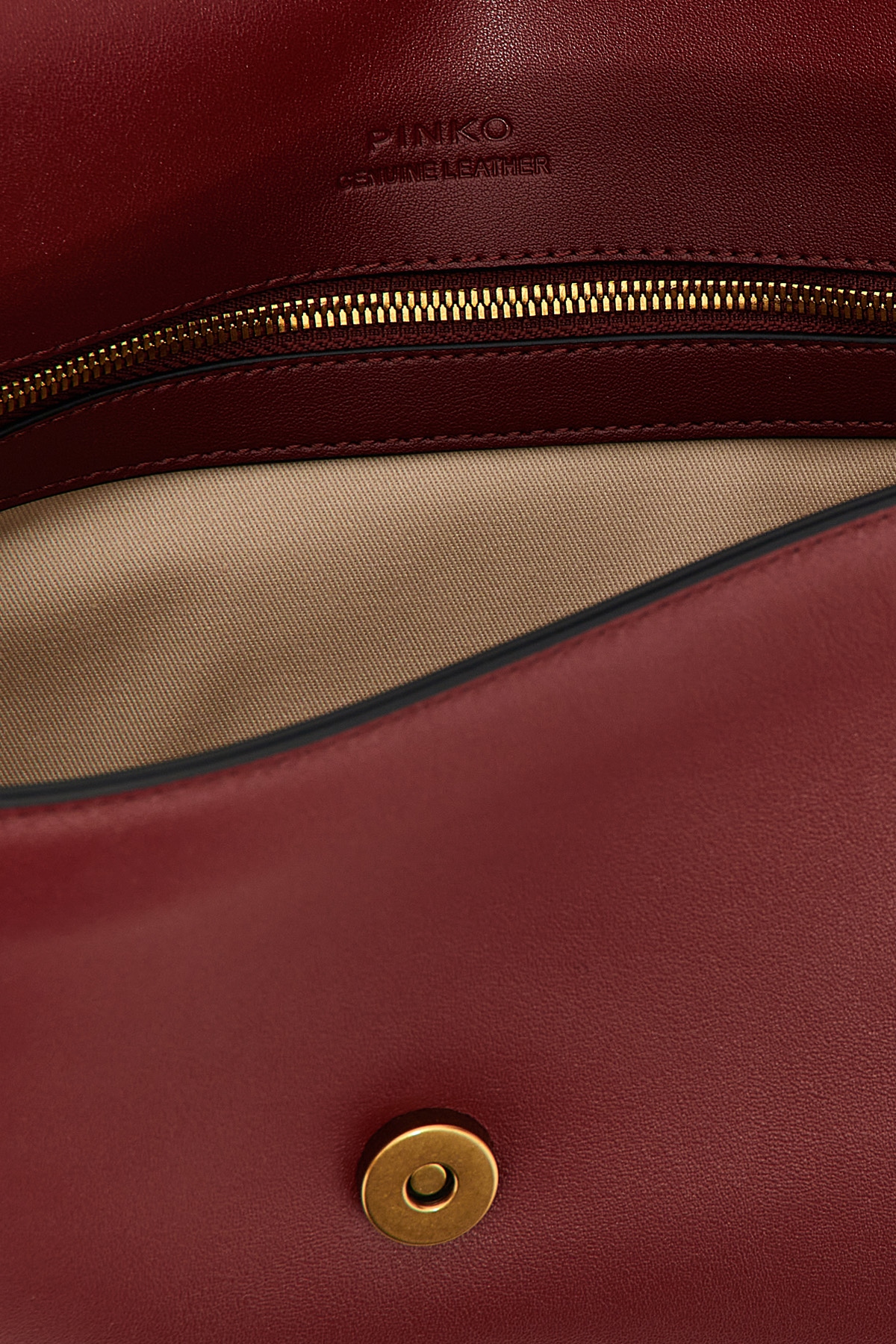 'Love One Classic' leather crossbody bag, magnetic flap closure with front metal logo applique, removable shoulder strap.