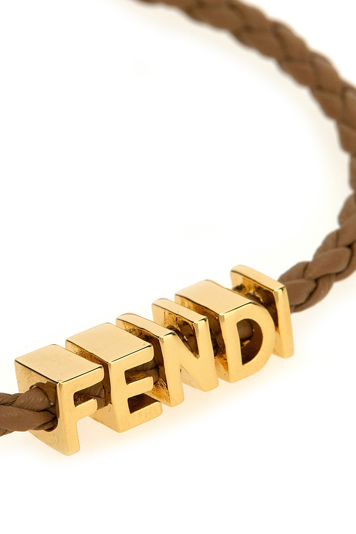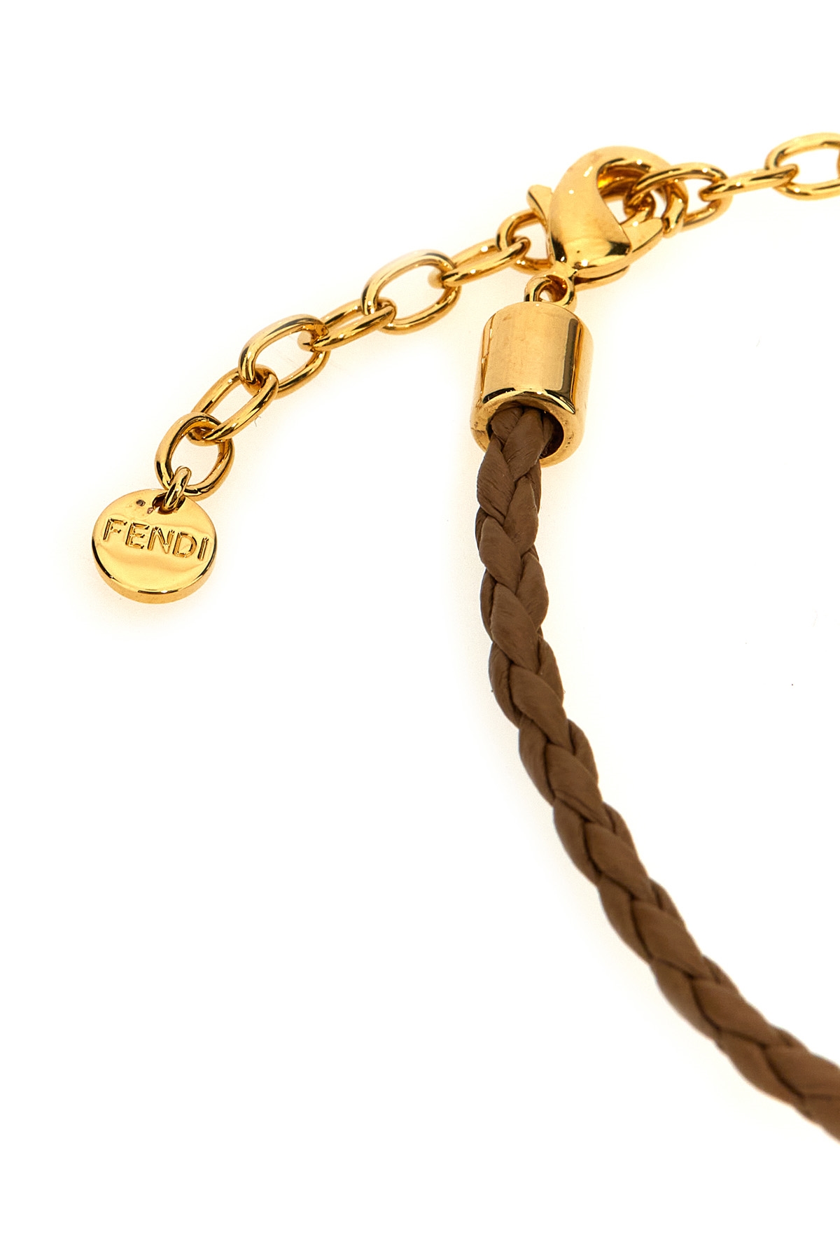 'Fendigraphy' braided leather bracelet, metal lettering logo, adjustable carabiner closure.