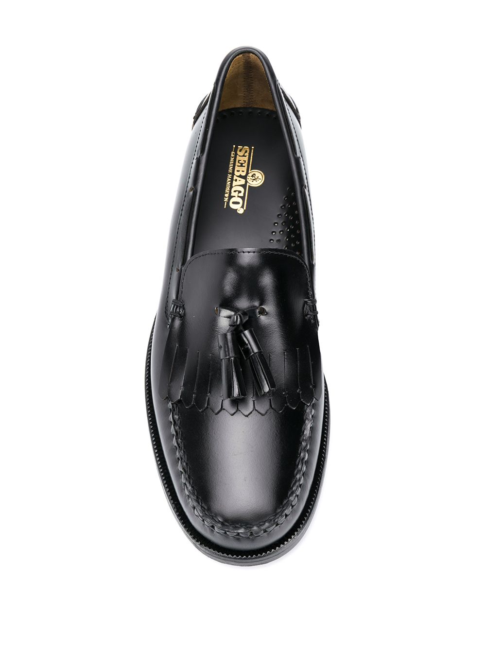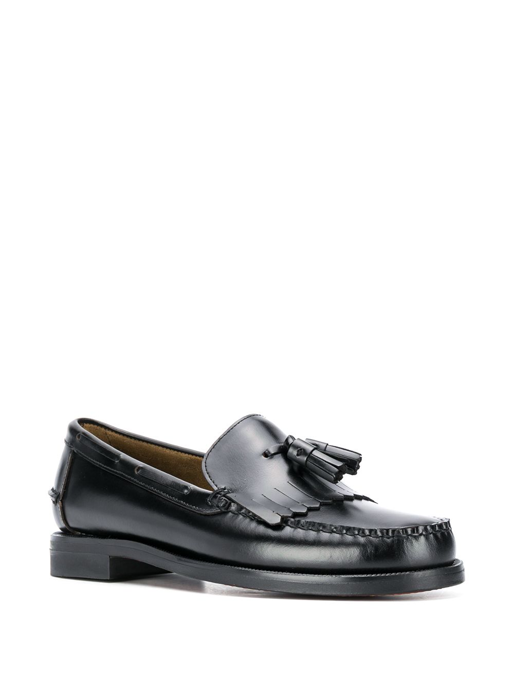 Black, calfskin, fringe and tassel detail, round toe, low heel and slip-on design. | Sebago