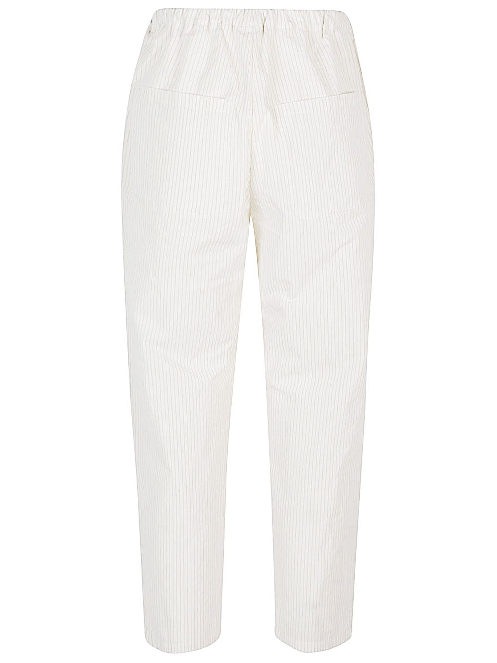 White trousers, wide leg, elastic waist, two side pockets, two back pockets, straight hem.