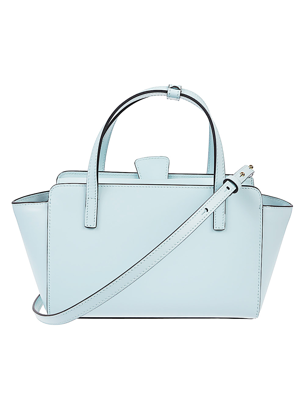 Pouch set inside one of the handles which blends perfectly with the structure of the bag., magnetic closure, adjustable and removable shoulder strap, flat bottom, gold-plated metal hardware, internal pockets and fully lined in cotton.