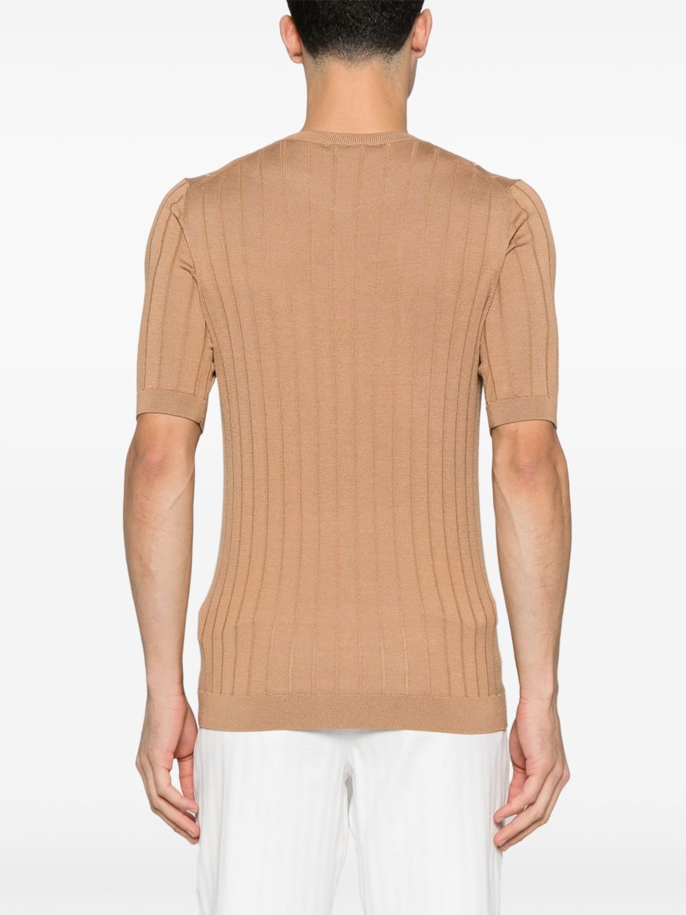 Cenere GB has selected this article based on its stylistic and eco-sustainable content. Tagliatore Ribbed T-shirt Origin: Italy Characteristics camel brown Ribbed hem and cuffs crew neck short sleeves | Tagliatore Ribbed T-shirt Abb.to uomo IT