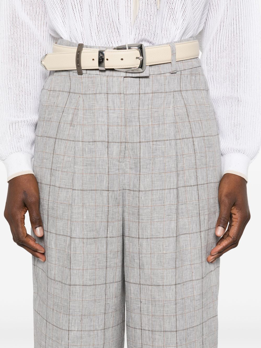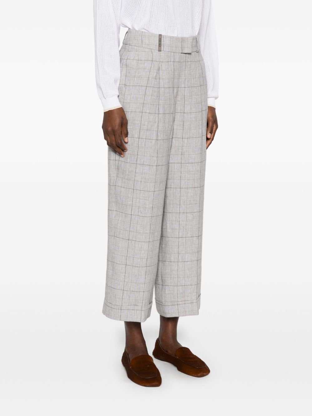 A garment that combines the refinement of the Prince of Wales with the freshness of linen, these trousers with pleats and elastic waist on the back offer a soft and fluid fit. | Peserico