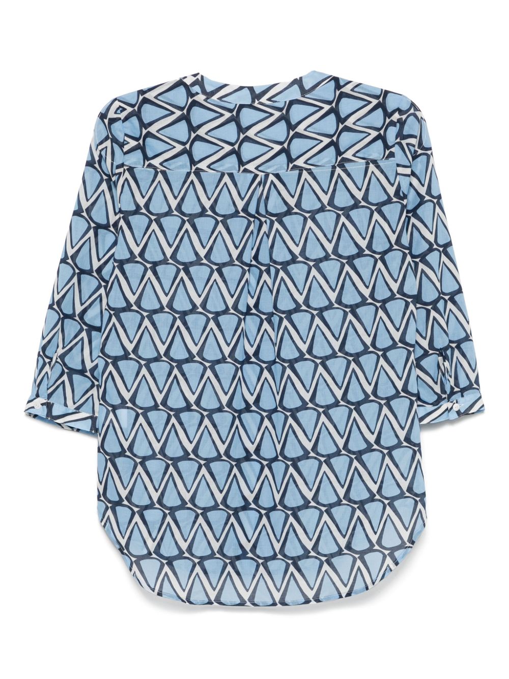 cornflower blue front button placket buttoned cuffs inverted pleat round split neck | Cenere GB