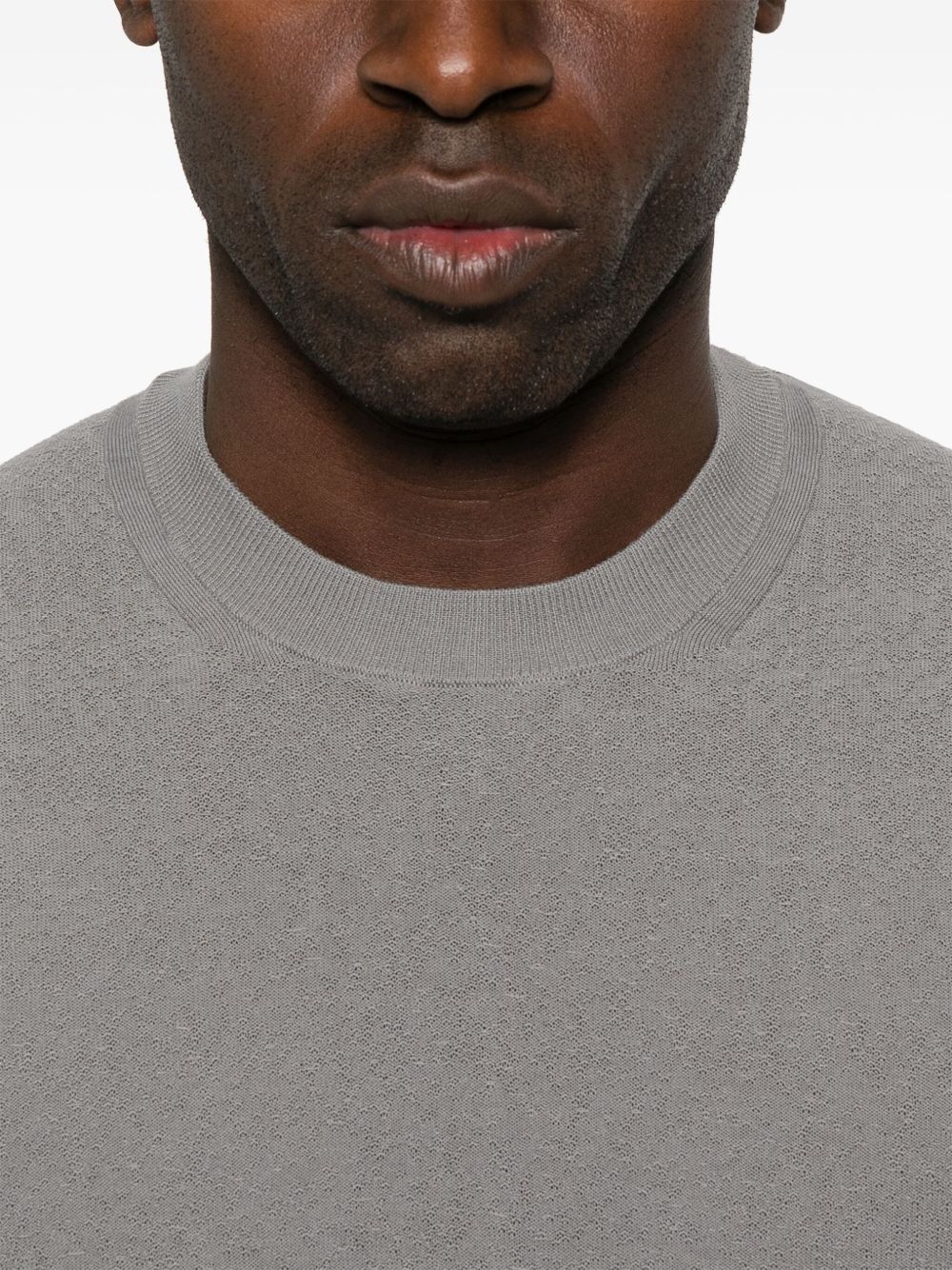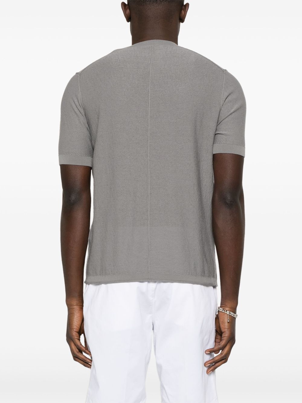 Cenere GB has selected this article based on its stylistic and eco-sustainable content. Paolo Pecora Slub knit T-shirt Characteristics grey, ribbed hem and cuffs details with decorative stitching crew neck | Paolo Pecora Slub knit T-shirt Alfabetica