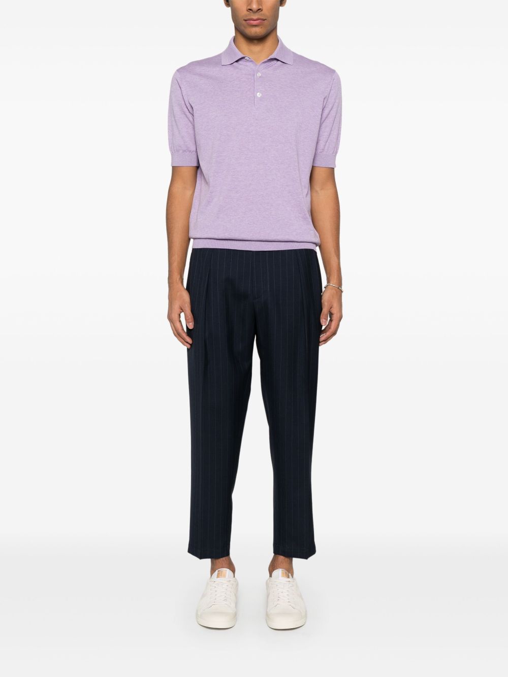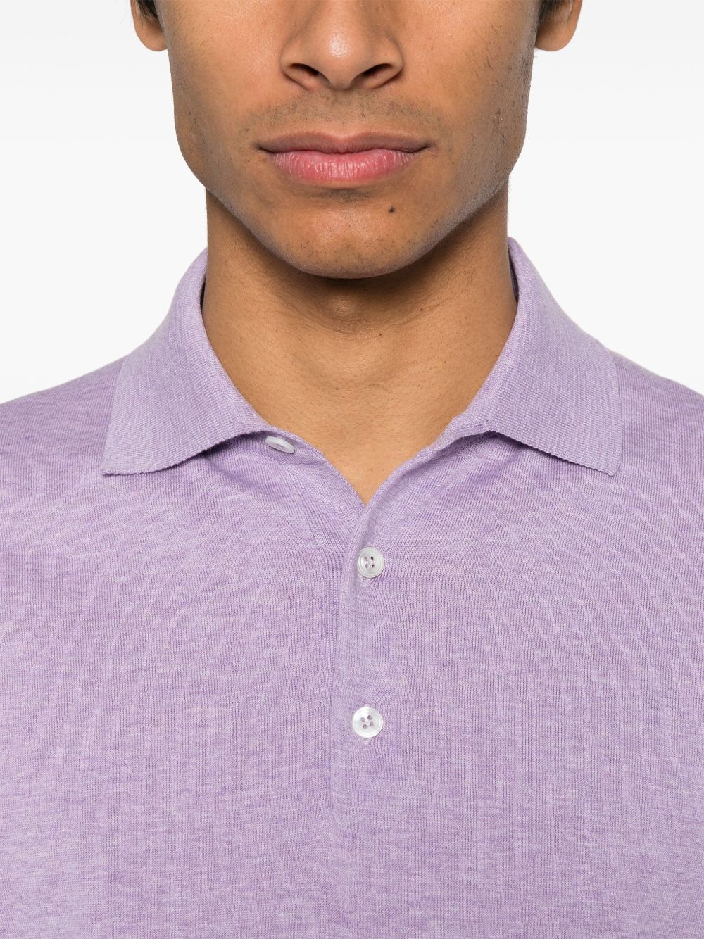 front closure with short buttons, lilac colour, short sleeves, ribbed cuffs and bottom