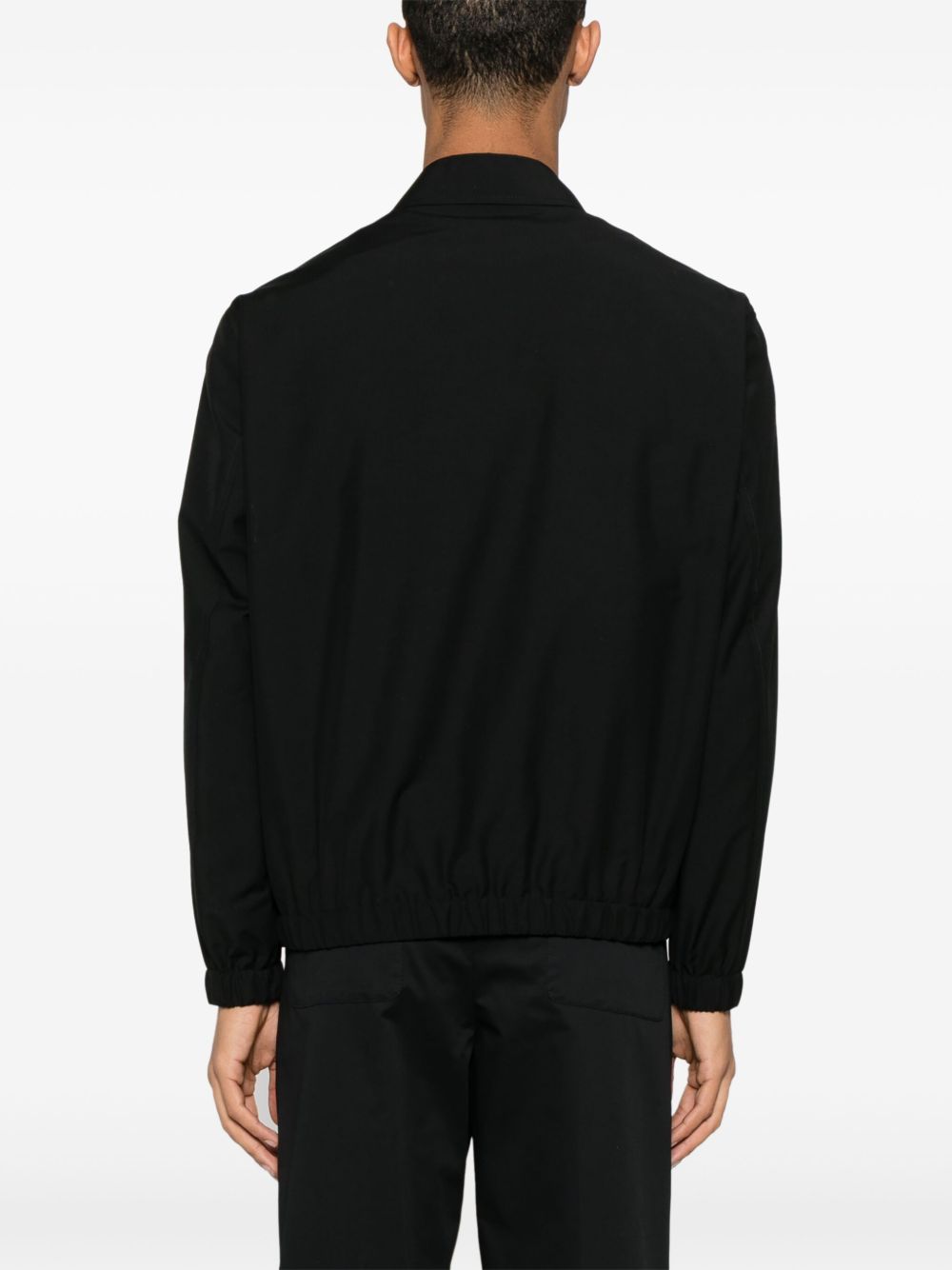 Front closure with black double-slider zip, two side welt pockets, elasticated cuffs, elasticated hem