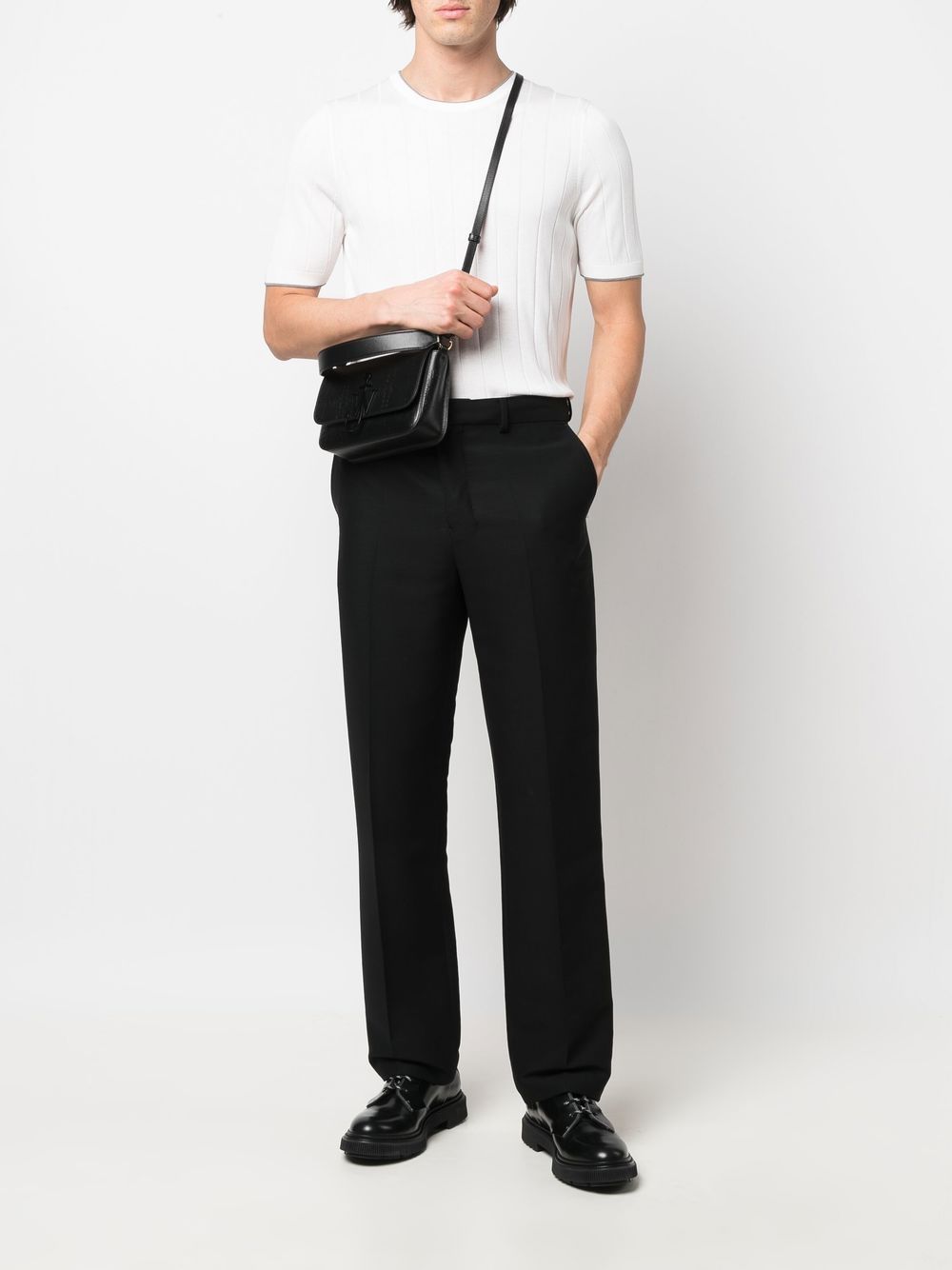 Fine knit, knitted design, vertical stripe pattern, short sleeves, ribbed hem and straight hem. | Beard