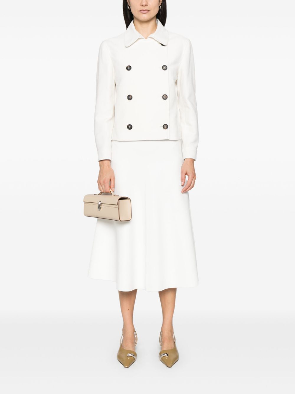 Brunello Cucinelli Cropped jacket Origin: Italy Characteristics white Double-breasted closure with buttons Buttoned cuffs two side welt pockets full lining Composition Lining: acetate 74%, silk 26% Exterior: cotton 79%, linen 21% 100% ecological brass Washing instructions Dry clean only | Brunello Cucinelli Cropped jacket Abb.to donna IT