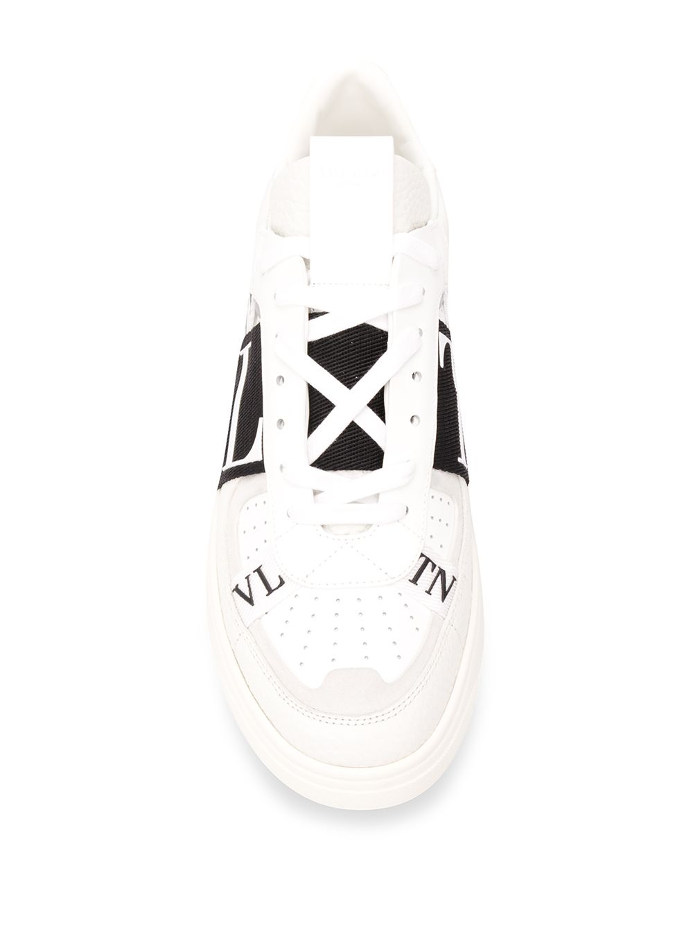 Practicality and style become one in these VL7N sneakers by Valentino Garavani. In white leather and detailed with logo bands that cover the front of the foot, they show the contemporary mood of the brand.