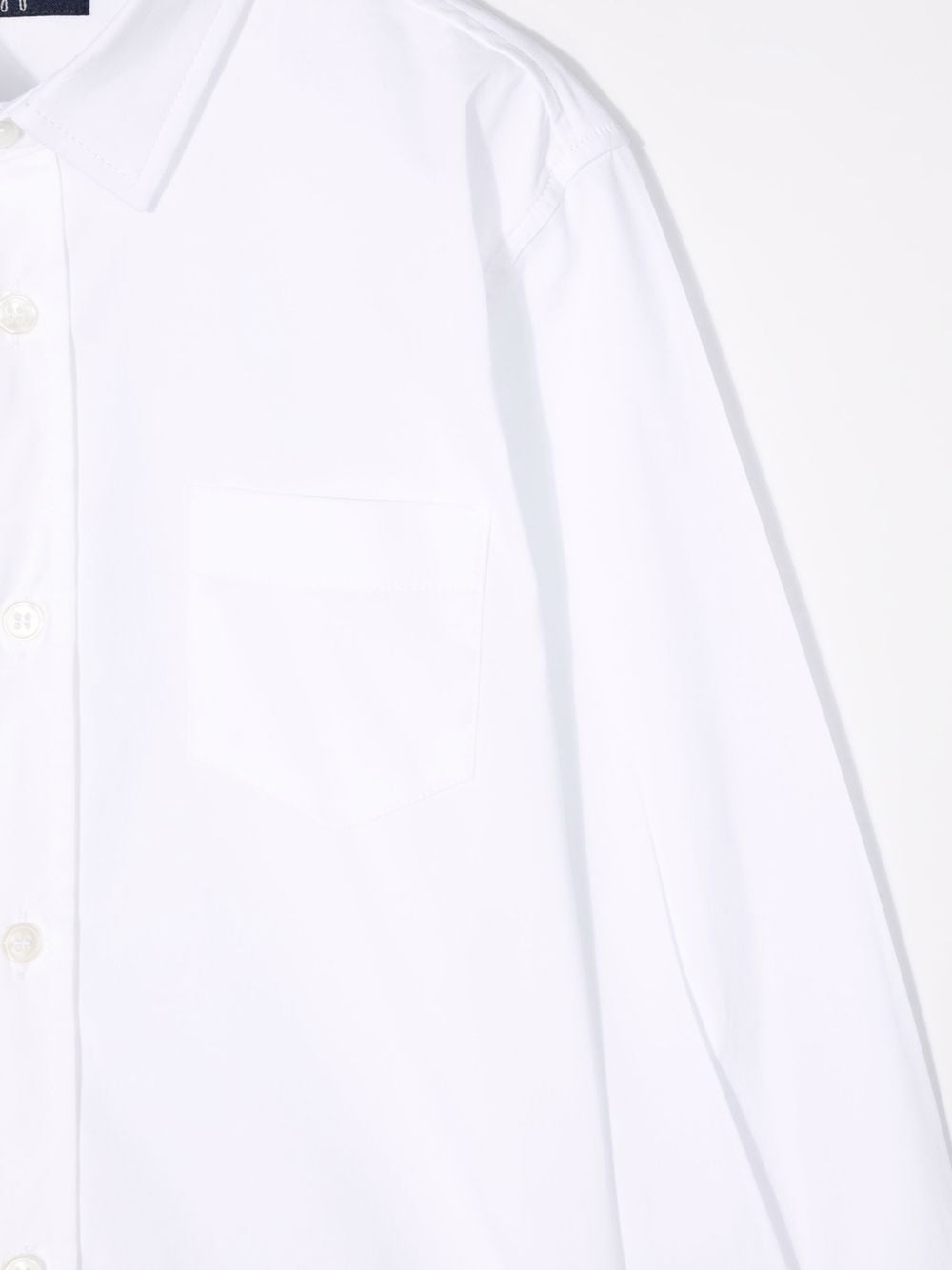 Camicia con applicazione Tasca applicata sul petto, chiusura frontale con bottoni, colletto classico, maniche lunghe, orli con bottone e orlo curvo. Colore: bianco. | Camicia con applicazione Kid Age