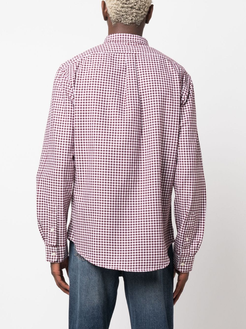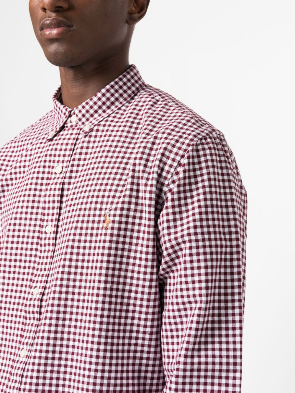 Rosso sangue, bianco, cotone, motivo a quadri, logo ricamato sul petto, colletto button-down, chiusura frontale con bottoni, maniche lunghe, orli con bottone e orlo curvo. | Polo Ralph Lauren