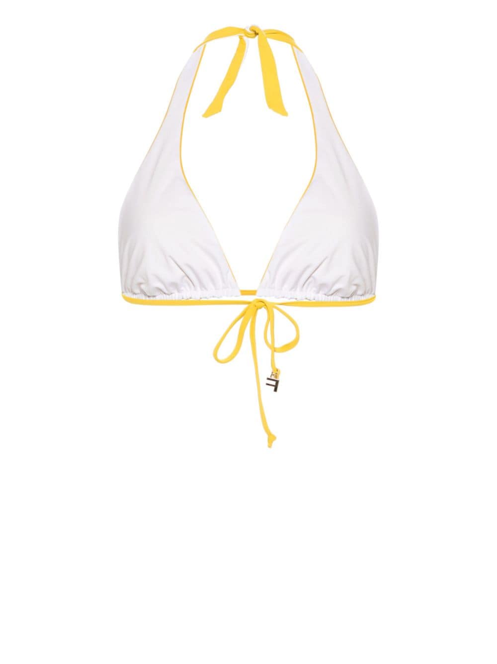 chiusura con laccio reversibile allacciatura al collo, design elasticizzato giallo limone/bianco, chiusura con laccio posteriore, coppa a triangolo. Ricordati di provare il costume da bagno sopra i tuoi indumenti. | Fisico