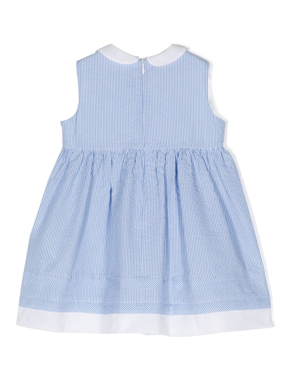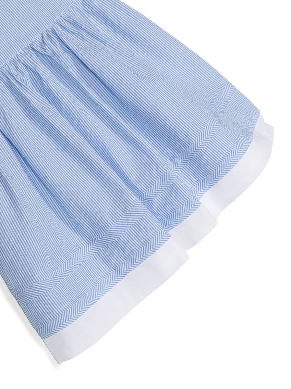 misto cotone celeste/bianco design elasticizzato stampa a righe verticali colletto con pettorina senza maniche gonna a trapezio dettagli con cuciture a vista orlo a contrasto chiusura posteriore con zip nascosta | Abito senza maniche a righe