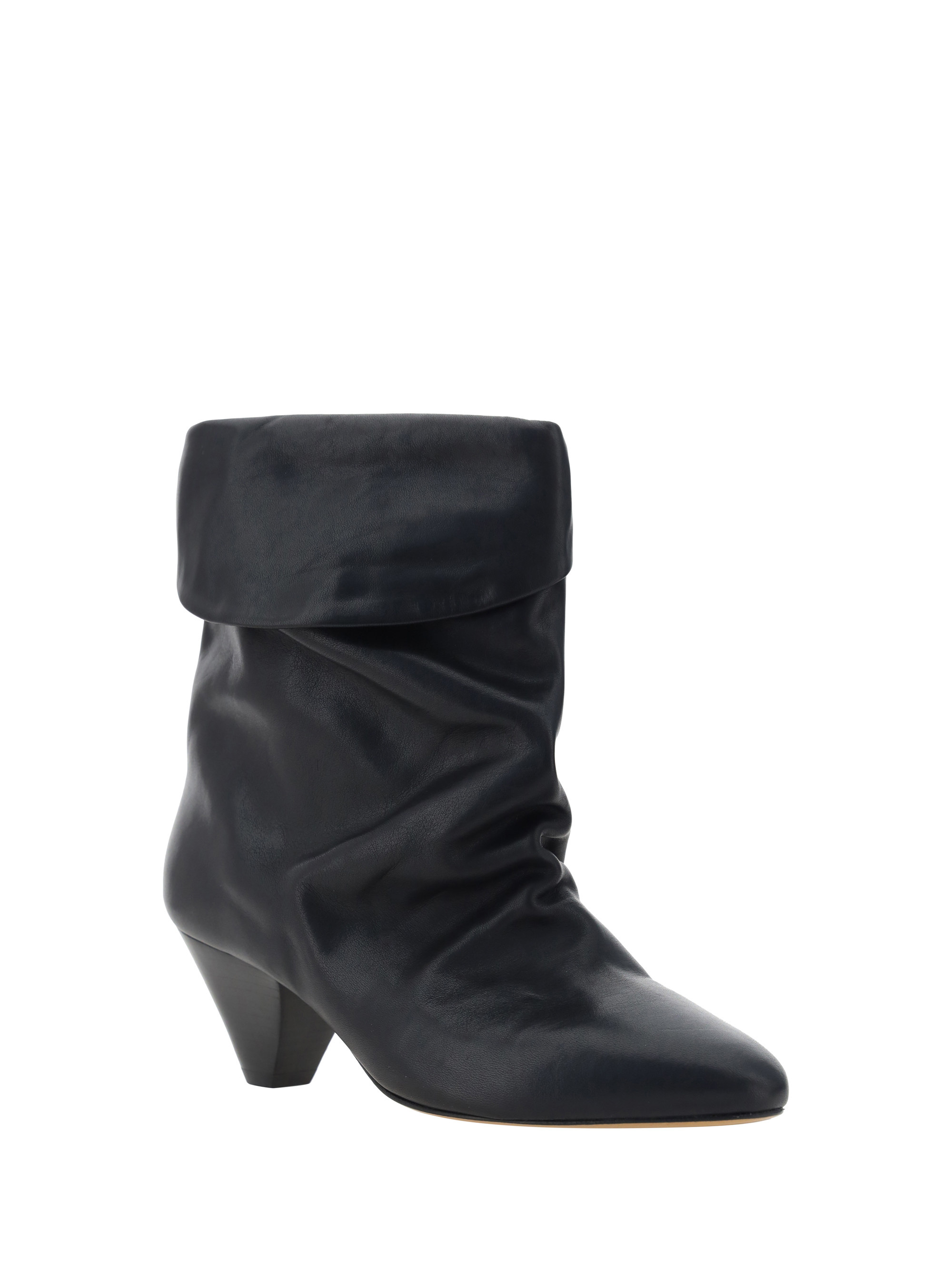 Leather Ryska Boots by Isabel Marant featuring an ankle length model, an elongated toe, draped detail on the shaft, and a cone heel.