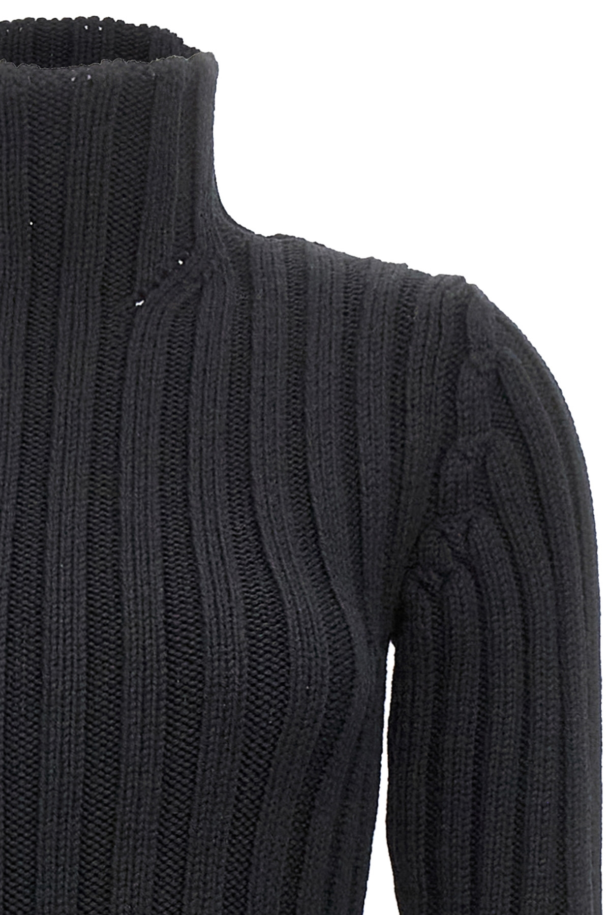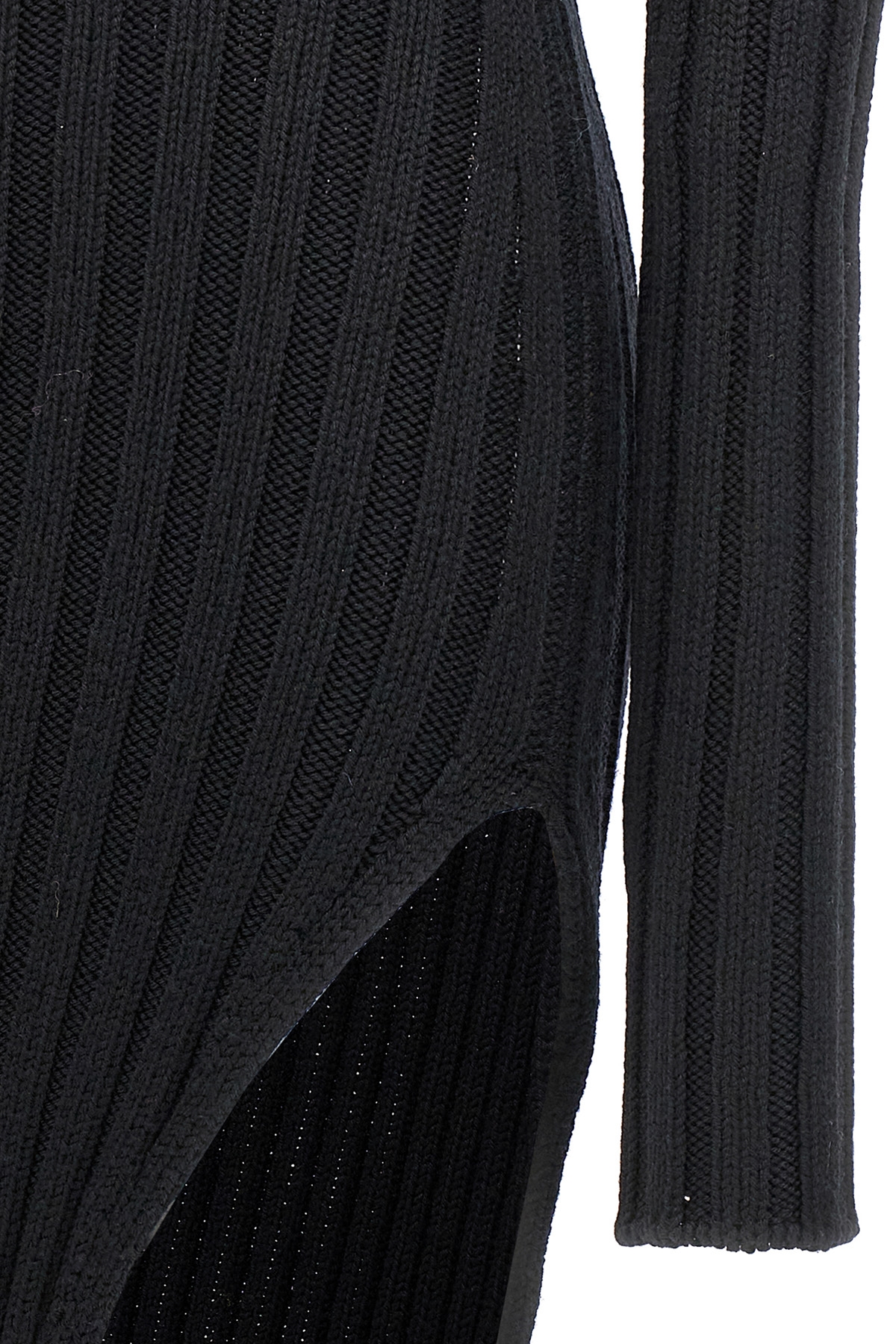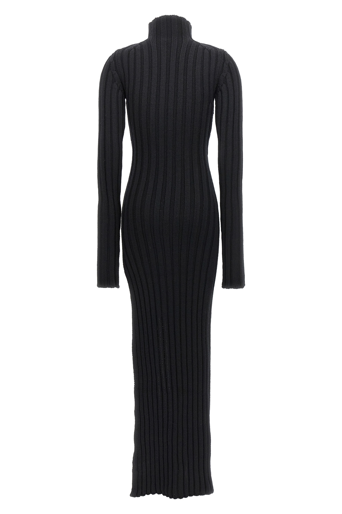 'Cyntia' ribbed wool dress with slim fit high neck and long sleeves and a maxi side split.