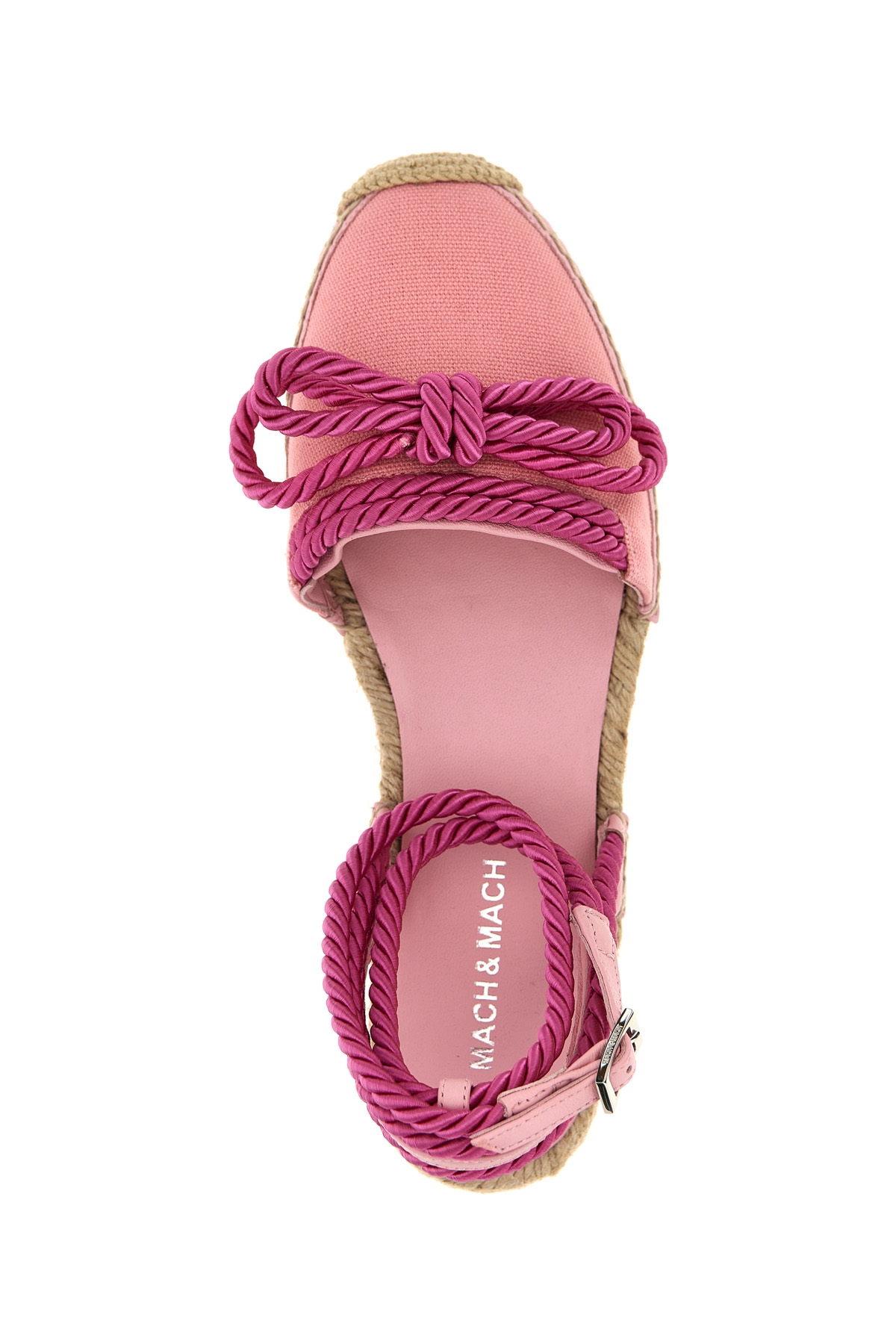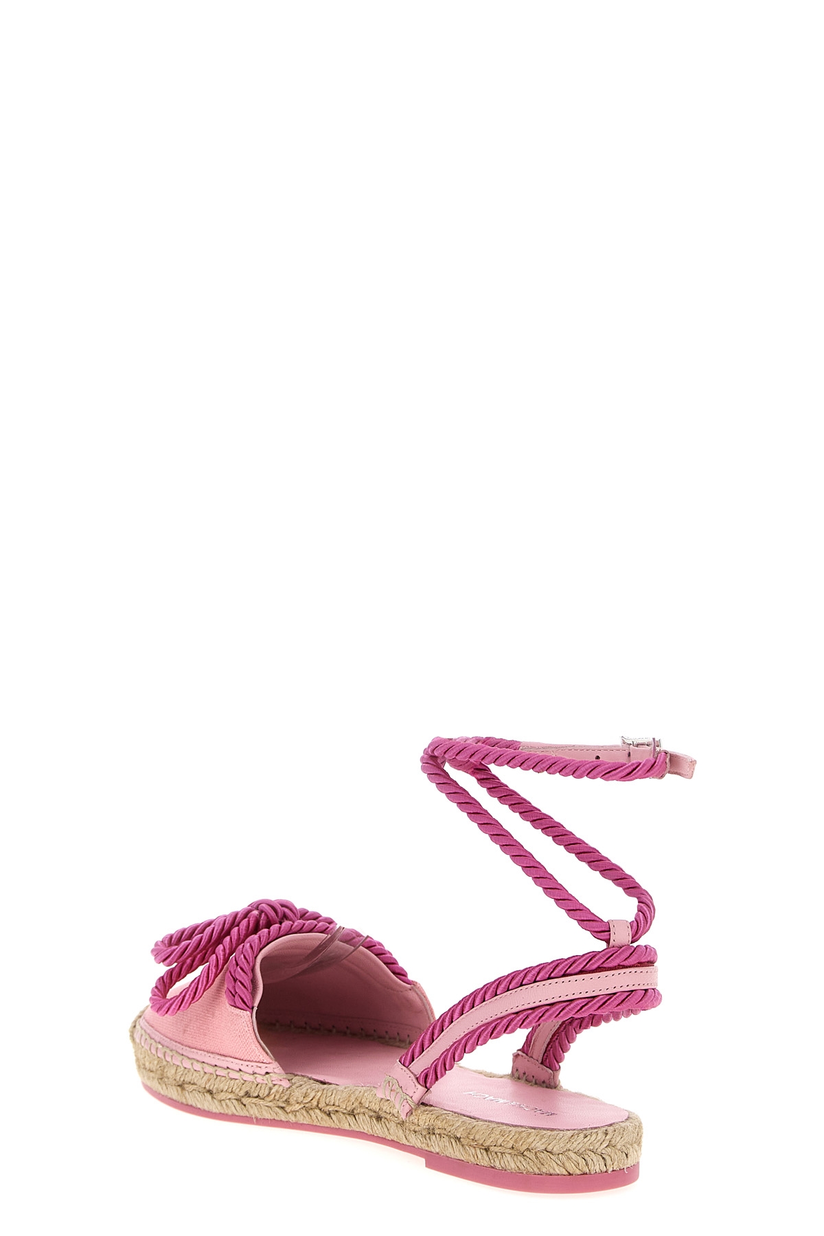 'Double Bow Pink Riviera' canvas espadrilles with leather and woven satin details, adjustable double ankle strap, rope midsole, rubber sole.