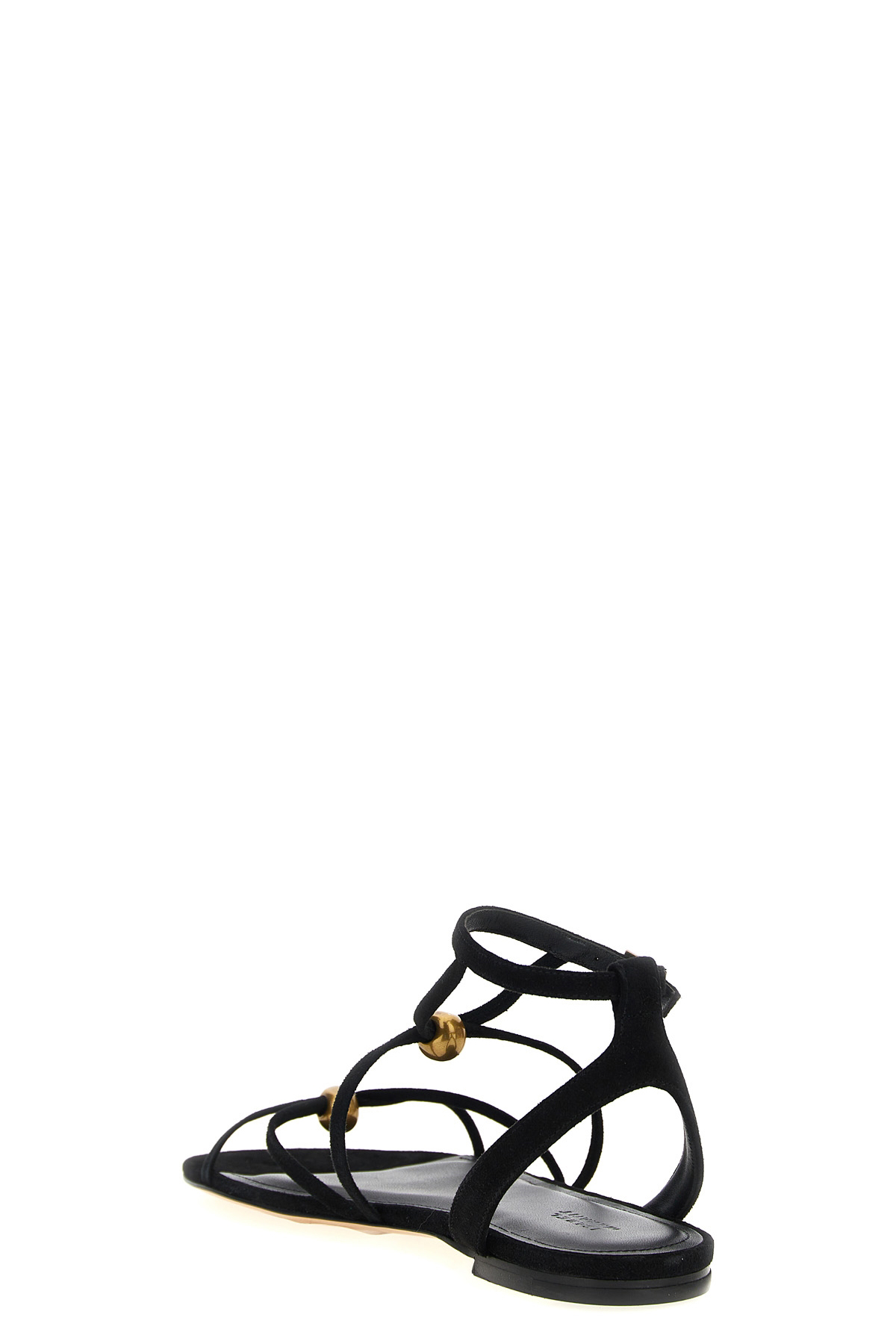 'Aeza' suede sandals with antiqued metal bead details, adjustable ankle strap, leather sole.