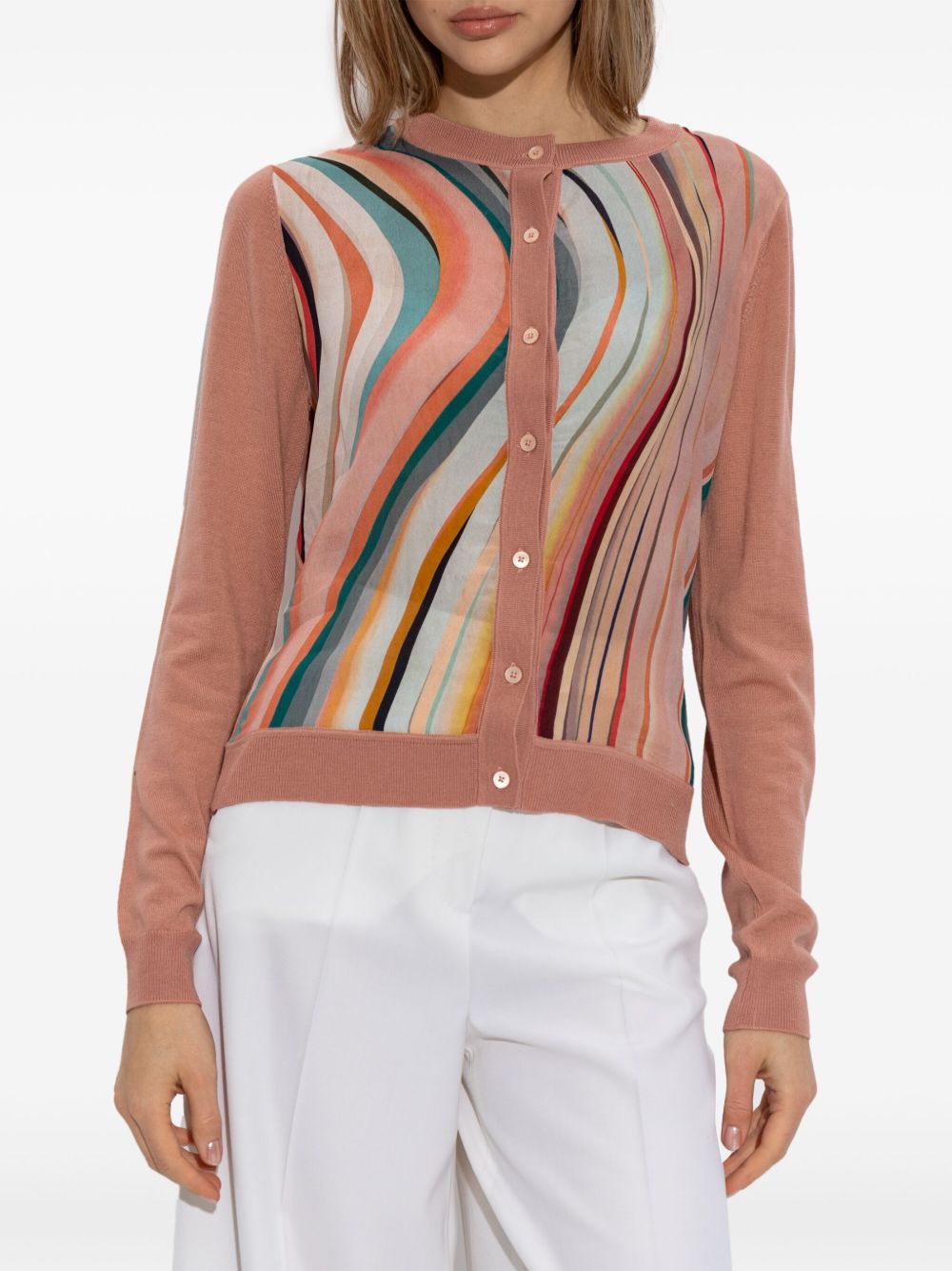 pink front button fastening stripe detailing long sleeves