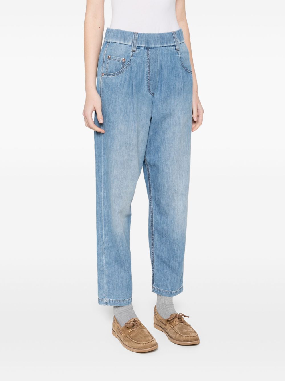 light blue elasticated waistband signature Monili chain detail contrast stitching rivet detailing