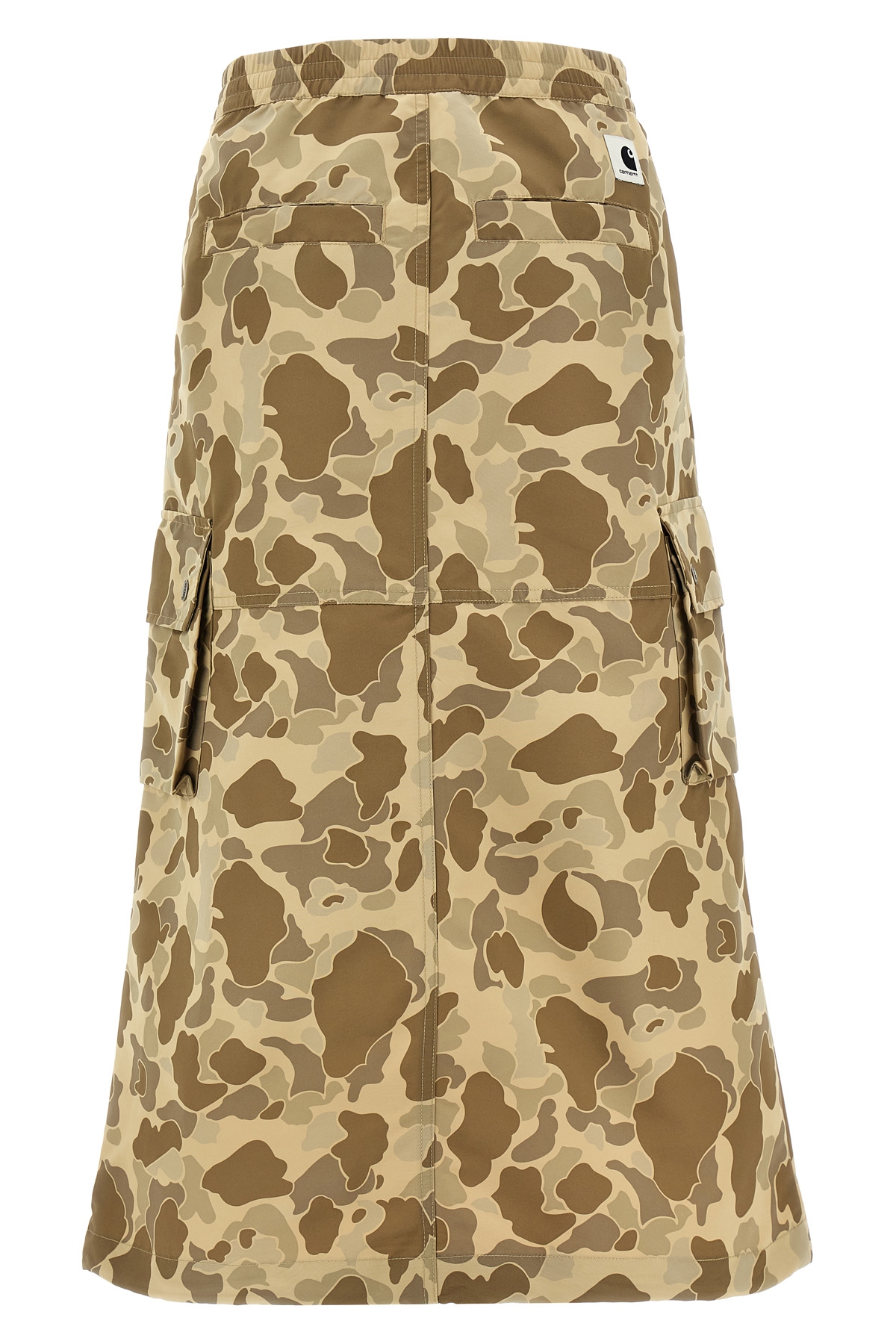 'Irwin' skirt in technical fabric with camouflage print, elastic waistband with adjustable drawstring, side pockets, elastic drawstring on the hem, back split.