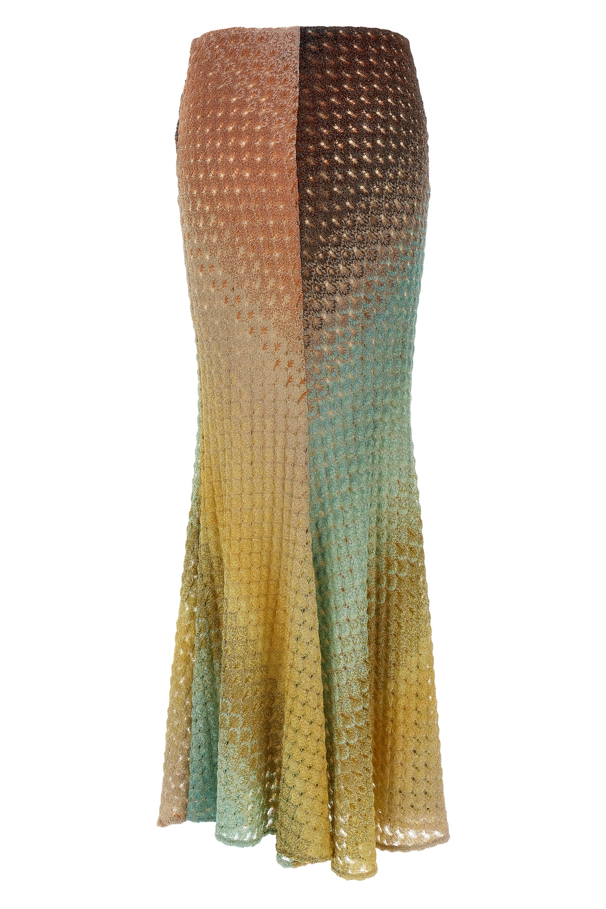 Maxi skirt in viscose lace with lurex yarns, mermaid model, elastic waistband, underskirt.