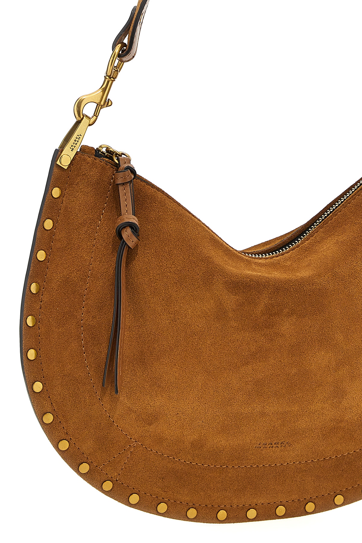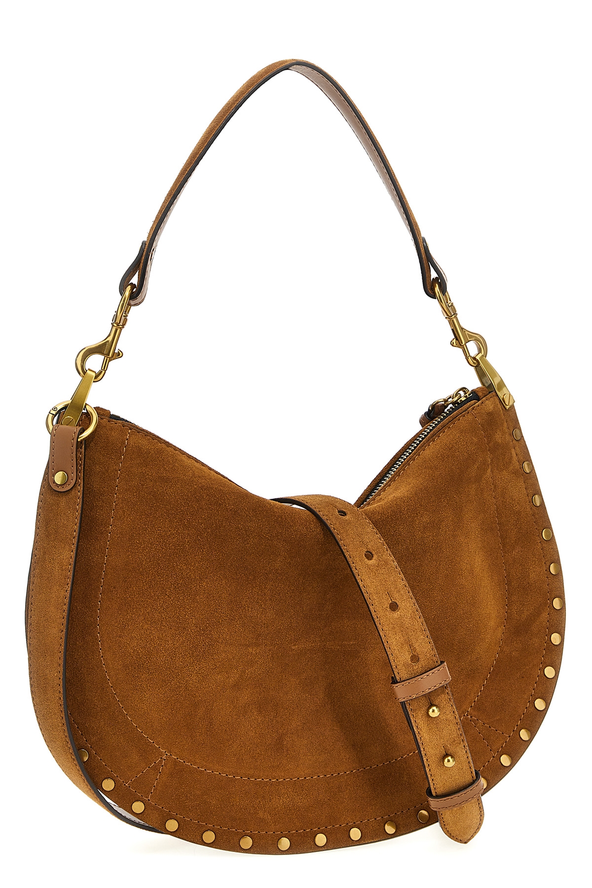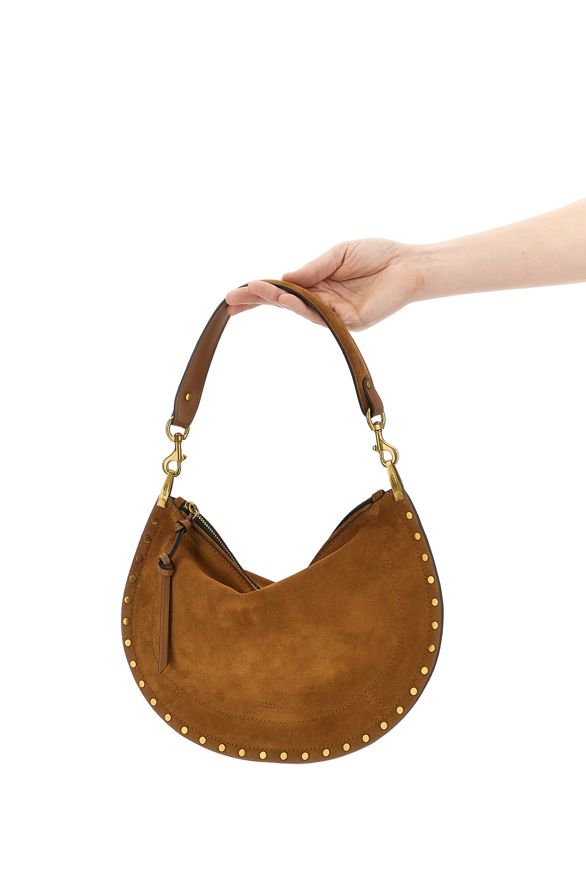 'Oskan Hobo Zipped' suede shoulder bag with smooth leather details, stud details, zip closure, removable handle, adjustable and removable shoulder strap.