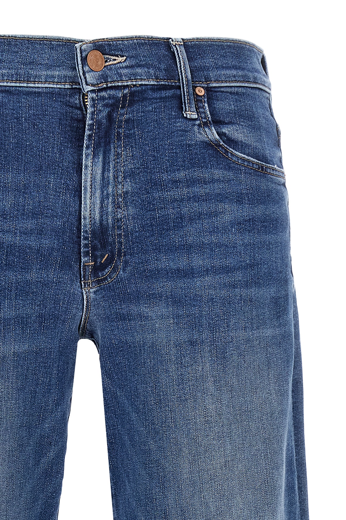 'The Mid Rise Maven Sneak' stonewashed stretch cotton denim blend jeans, mid-rise model with wide leg, zip and front button closure, five pockets.