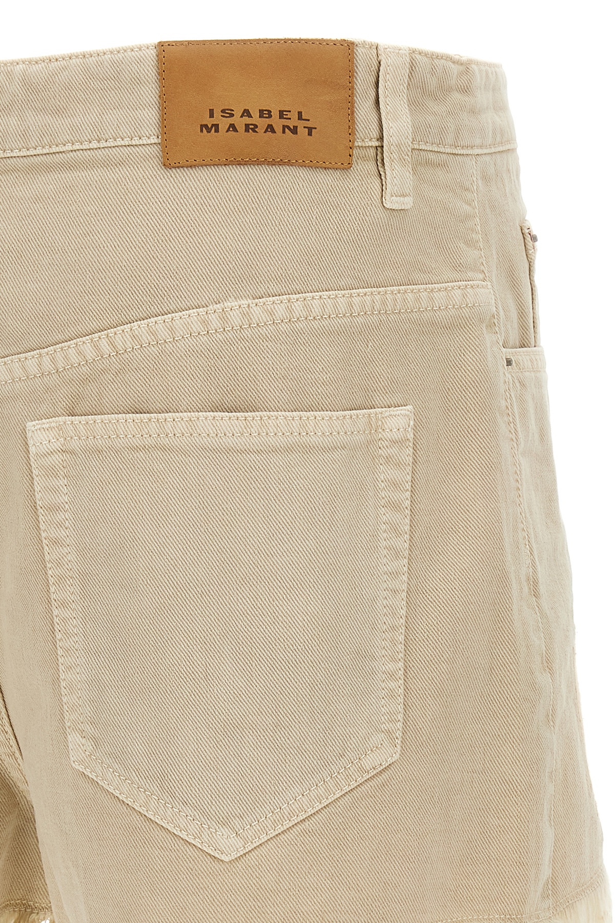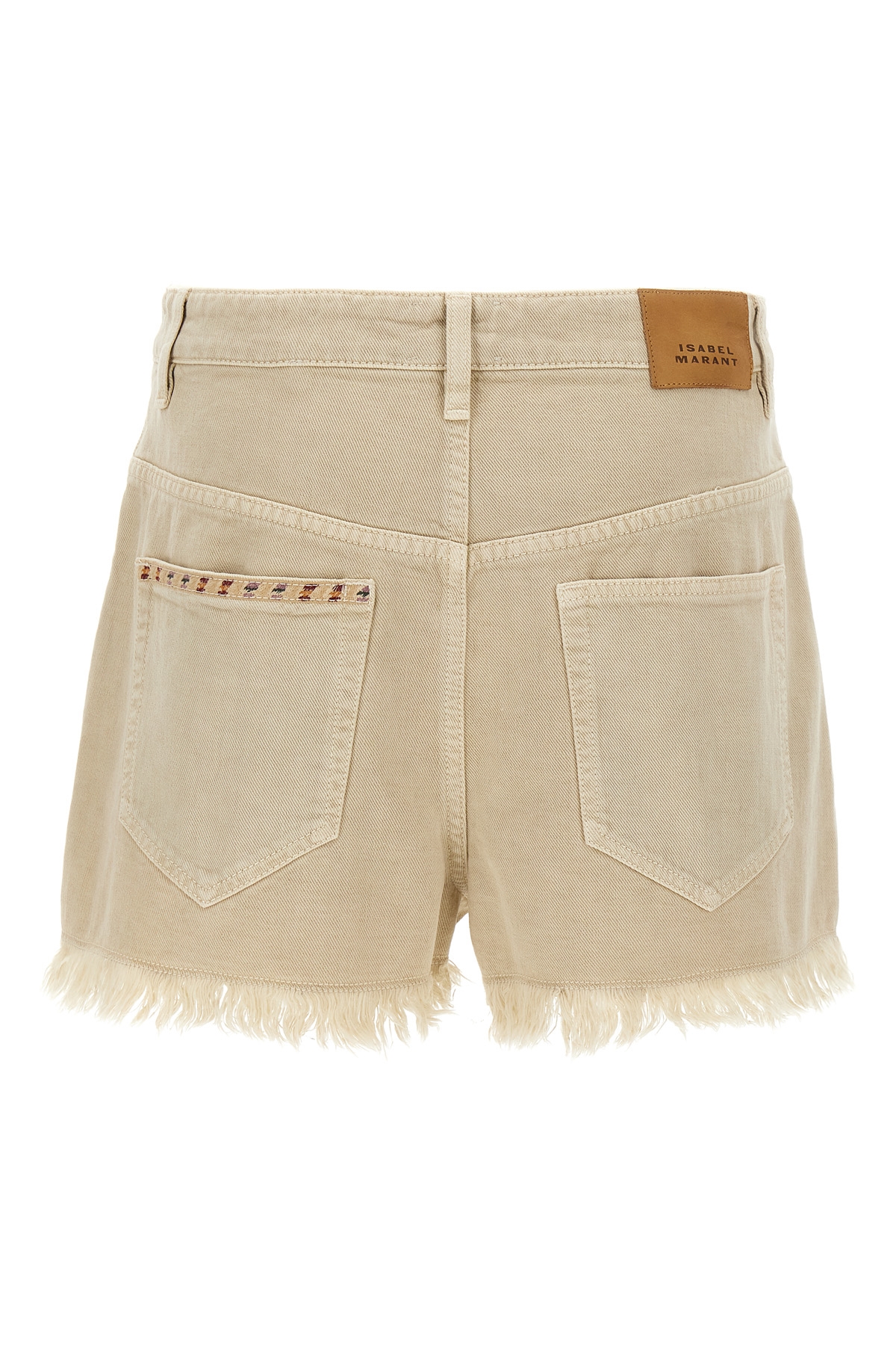 'Lesia' shorts in garment-dyed cotton denim with embroidery, fringes on the leg bottoms, front zip and button closure, five pockets, back leather logo tag,