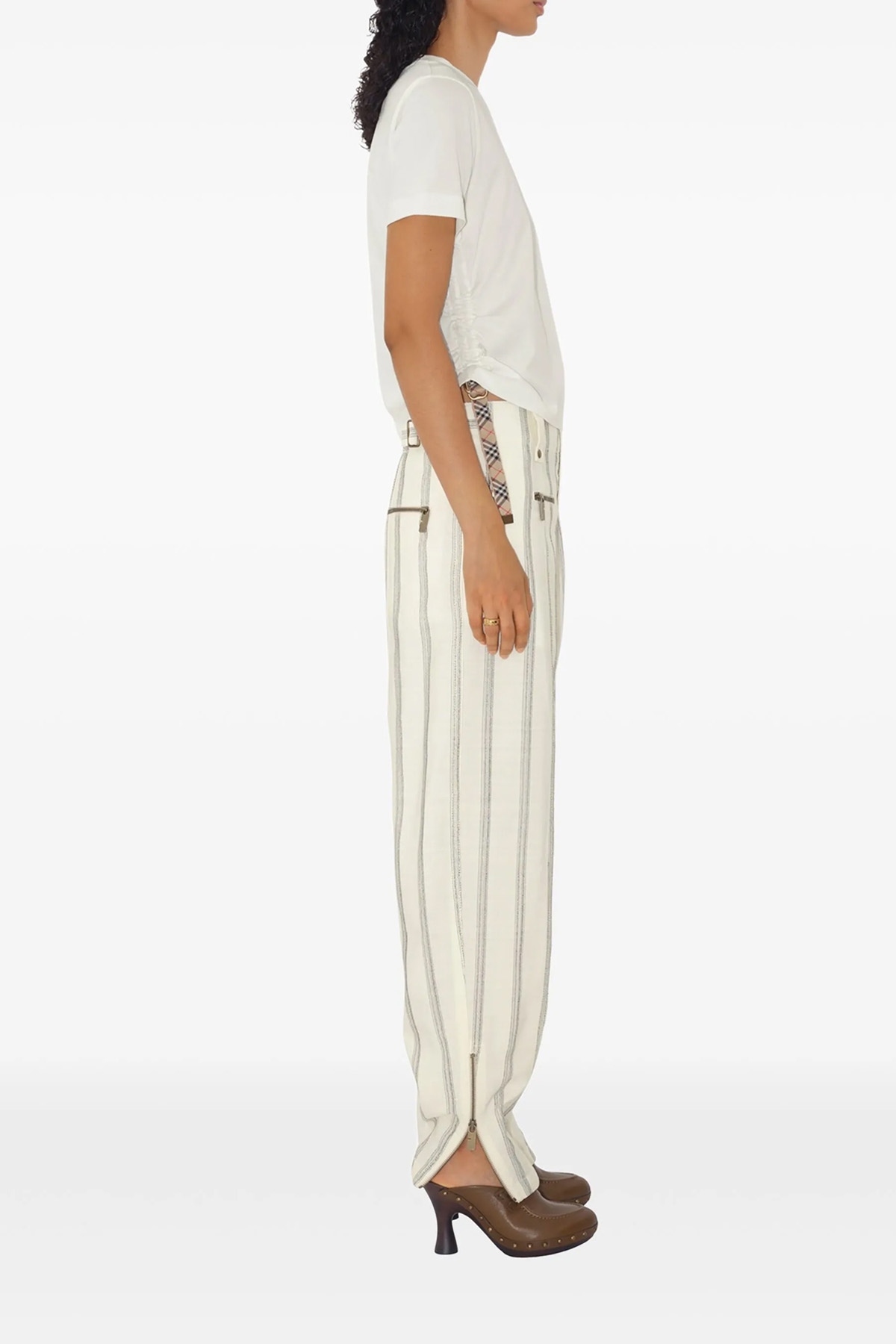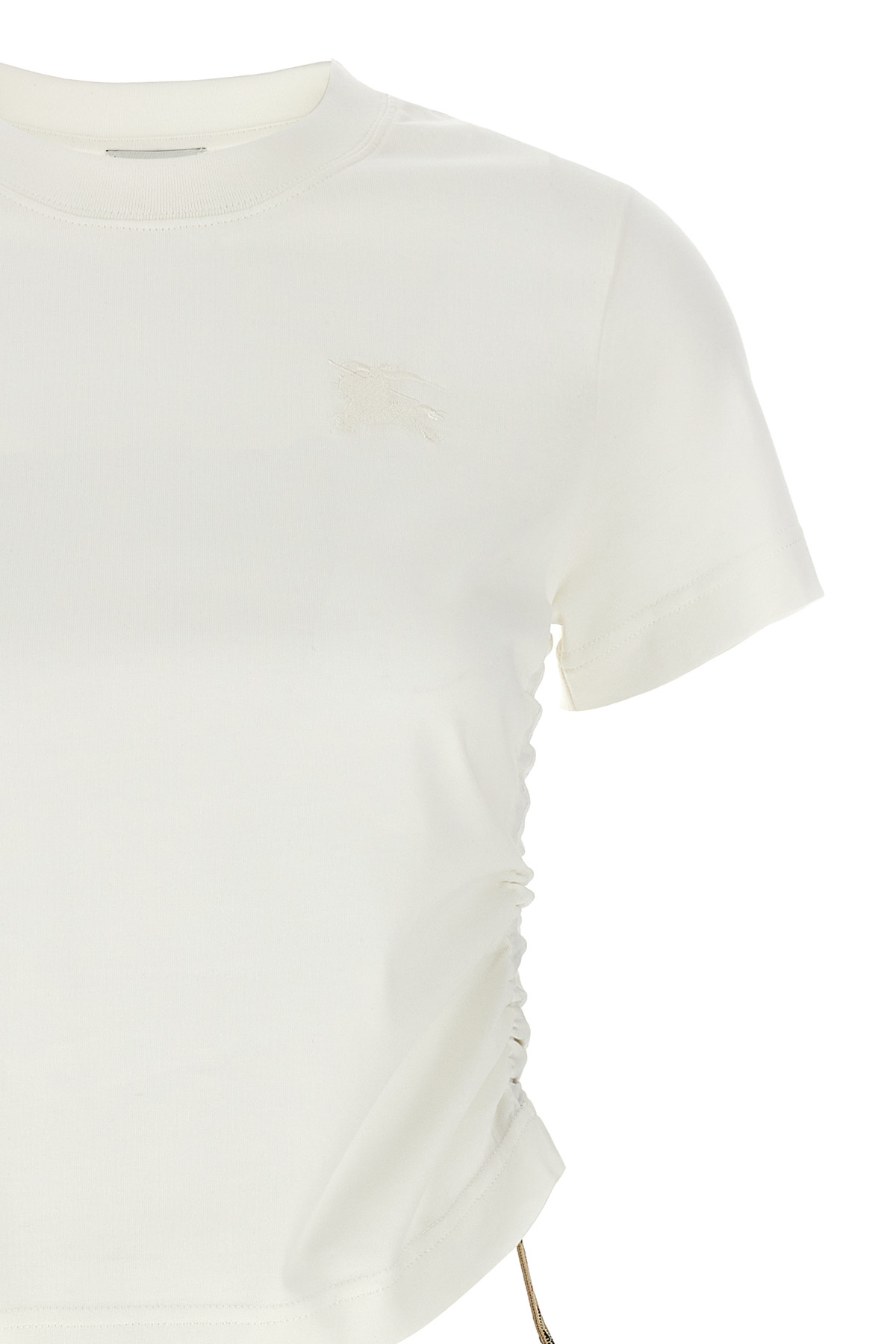 Light cotton jersey Equestrian Knight Design Stile Festival T-shirt with tone-on-tone embroidery on the front, crew neck, short sleeves, side detail with Burberry Check laces and B-shaped metal buckles to create curls.