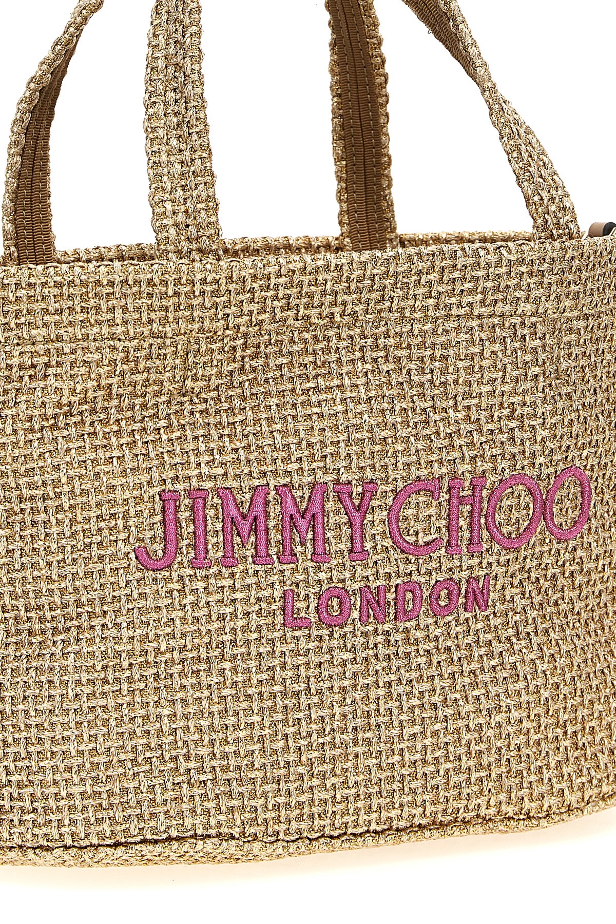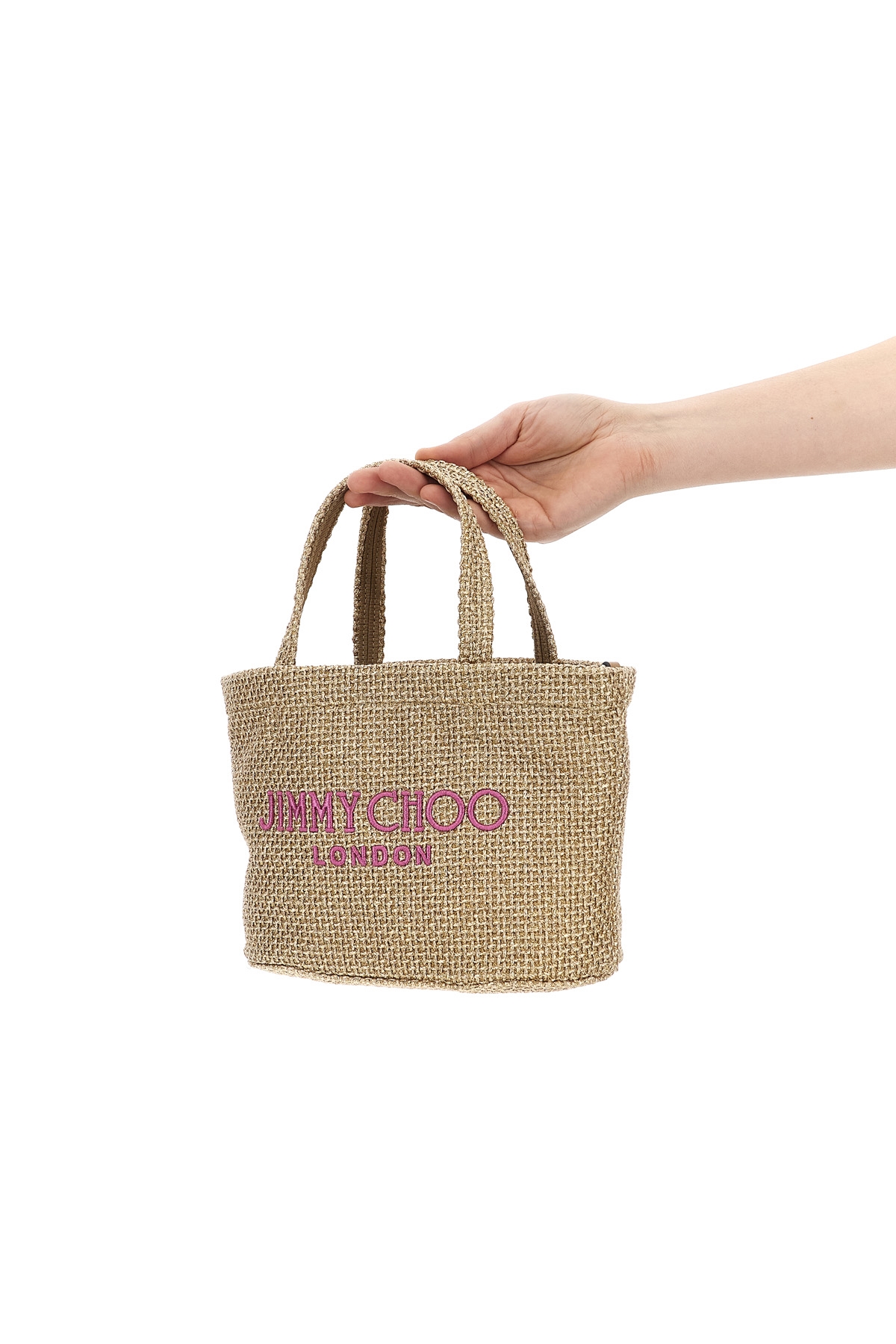 'Beach Tote E/W Mini' metallic raffia handbag with front logo embroidery, double handle, removable leather shoulder strap.