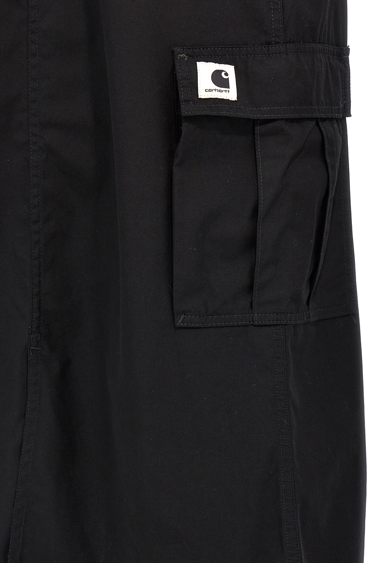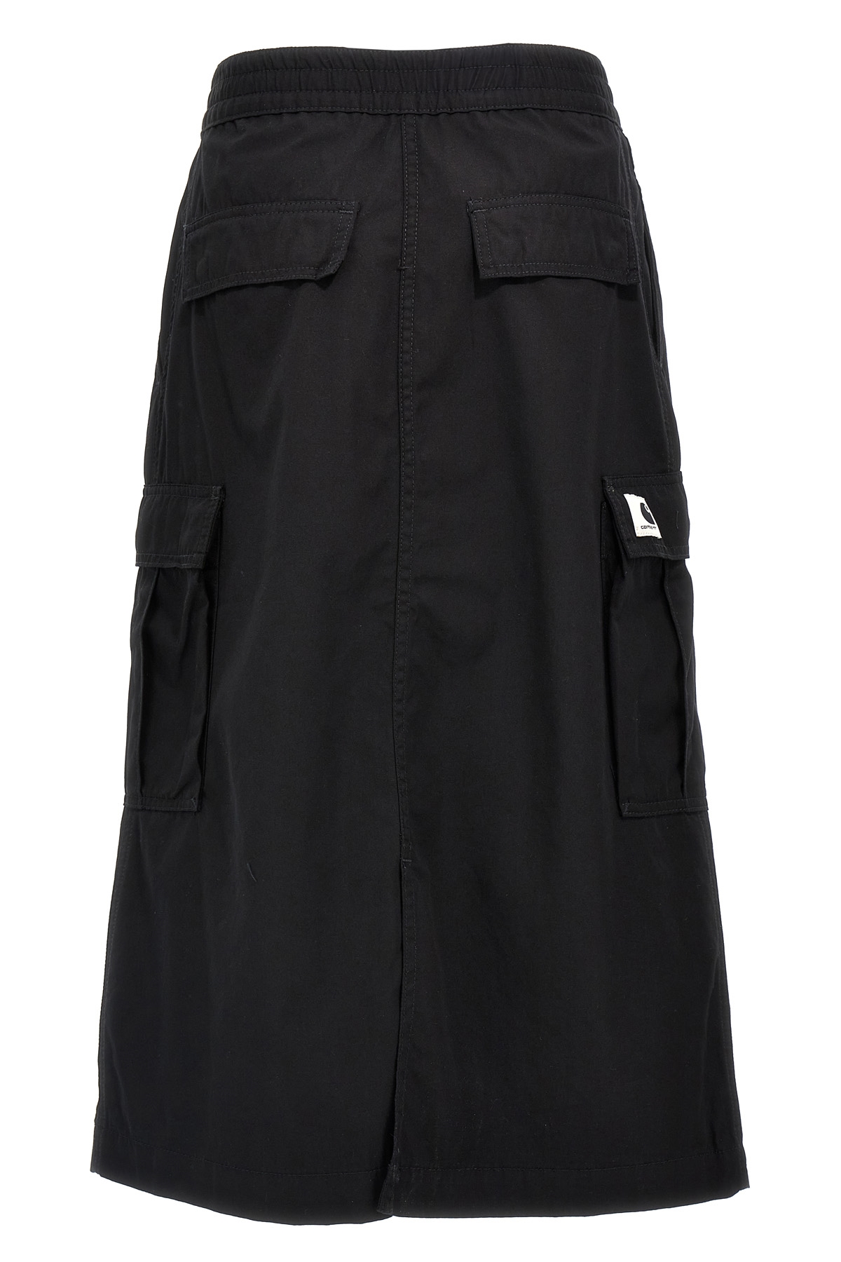 'Jet Cargo' midi skirt in light flared cotton poplin with elastic waistband, front zip and button closure, pockets, back split.