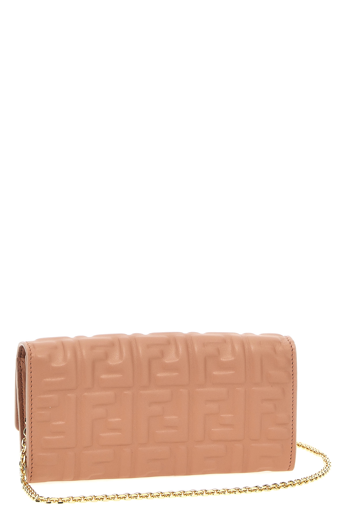 'Continental Baguette' nappa leather wallet on chain with iconic embossed FF pattern with a three-dimensional effect, flap closure with snap button and front metal logo, removable chain shoulder strap.
