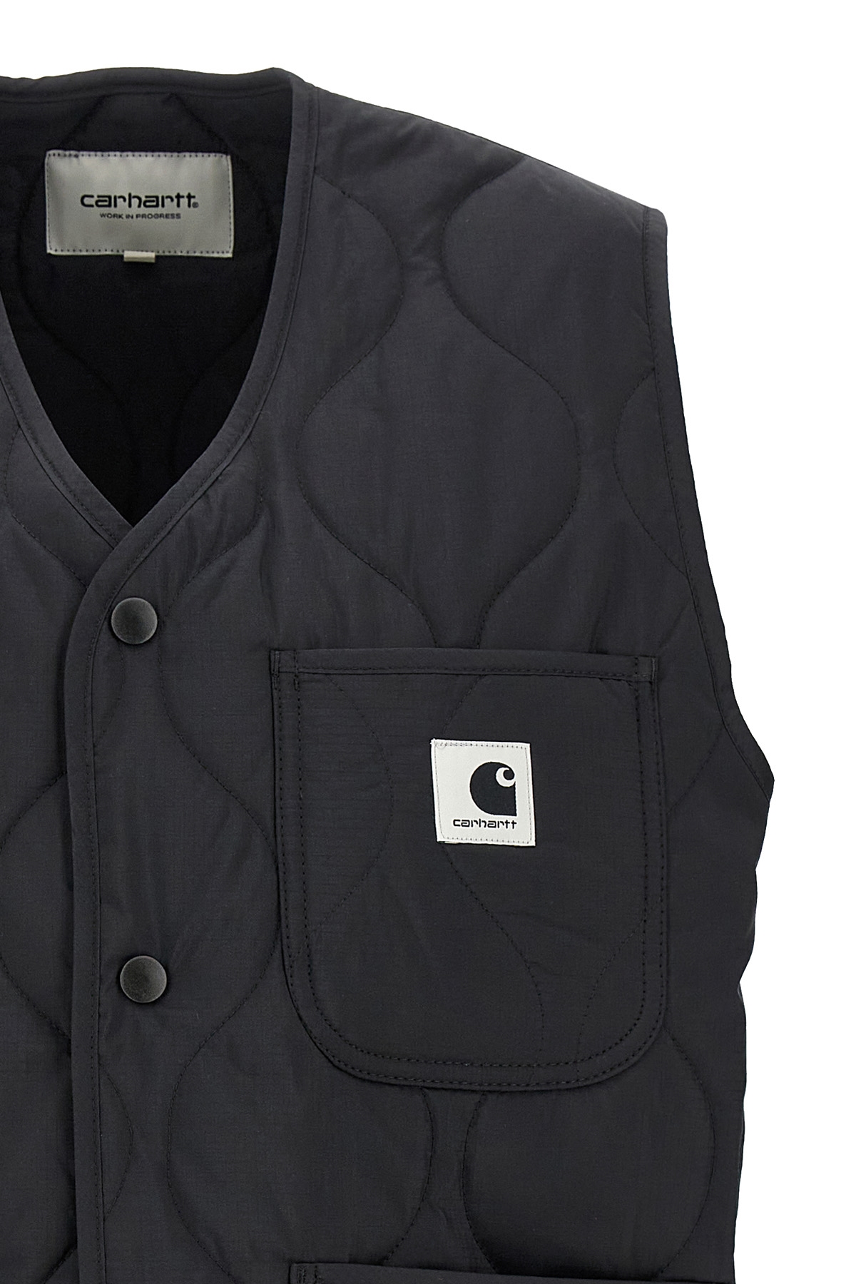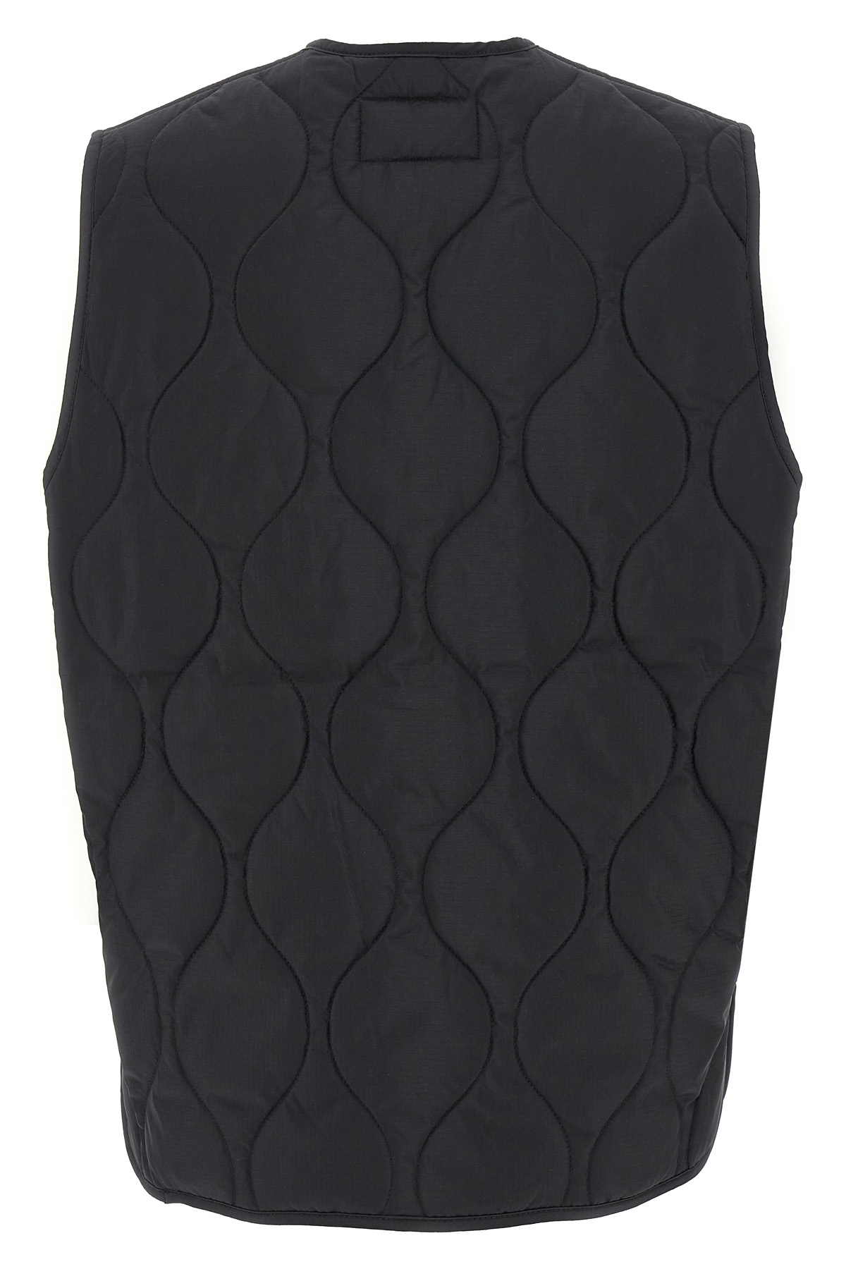 'Skyler' ripstop polyester vest with onion quilted lining, front logo patch, V-neck, front snap button closure, pockets. SUSTAINABLE: Product made from recycled polyester.