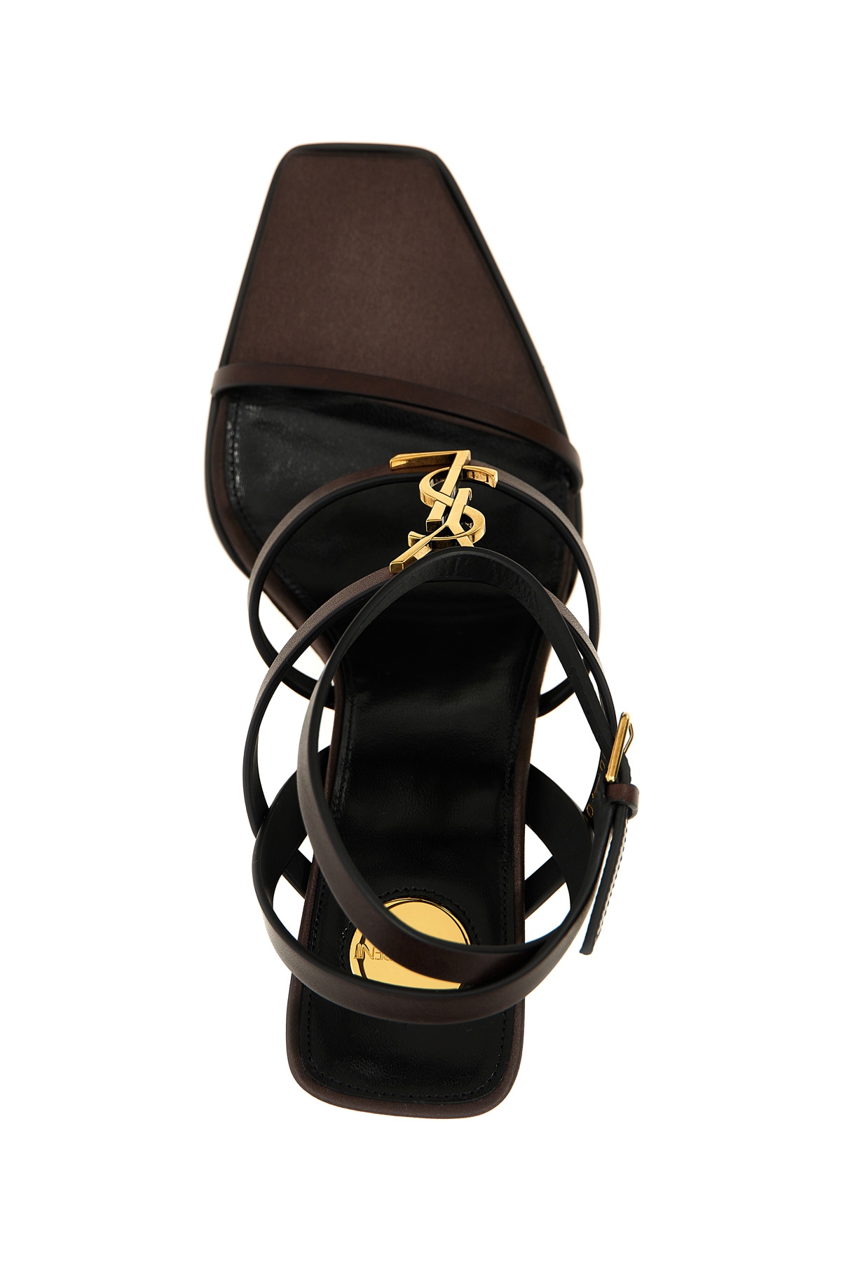 Smooth leather wedges with antiqued metal 'Cassandre' logo on the front, square toe and adjustable ankle strap.