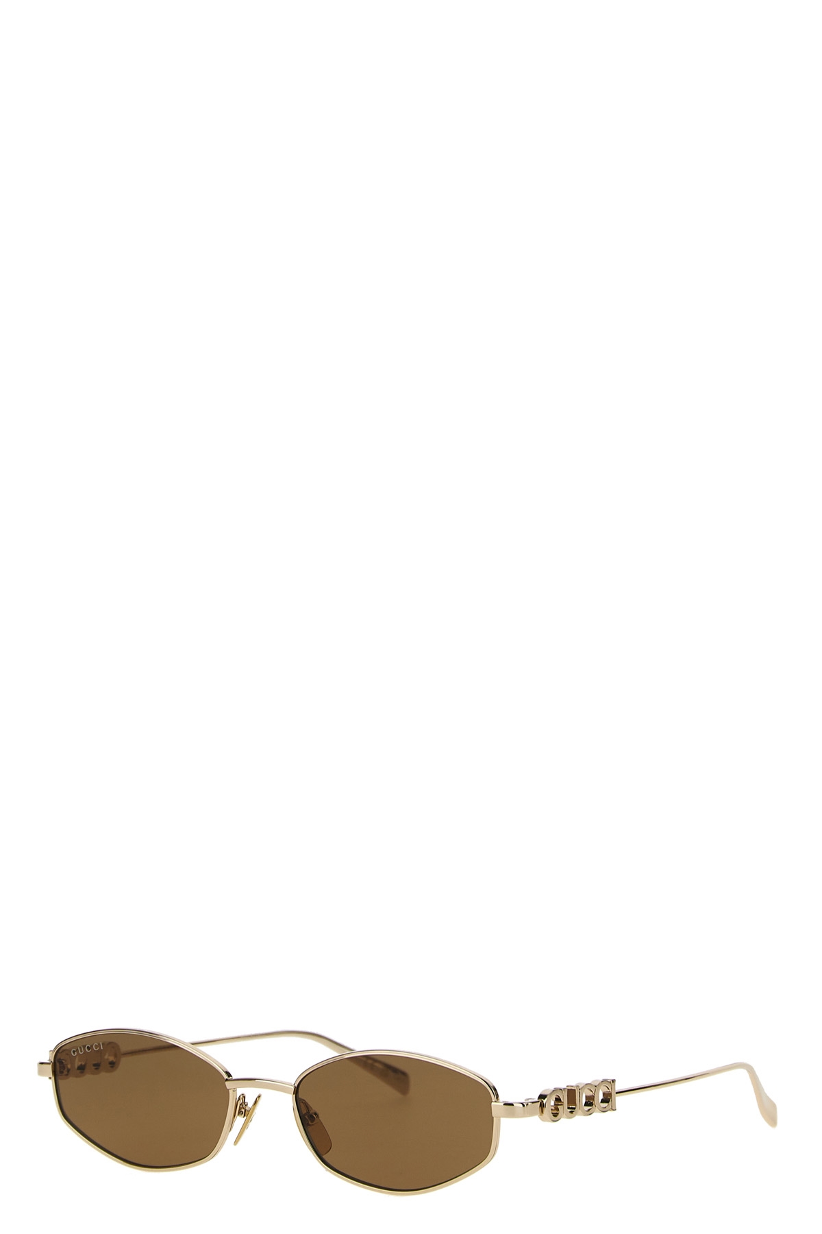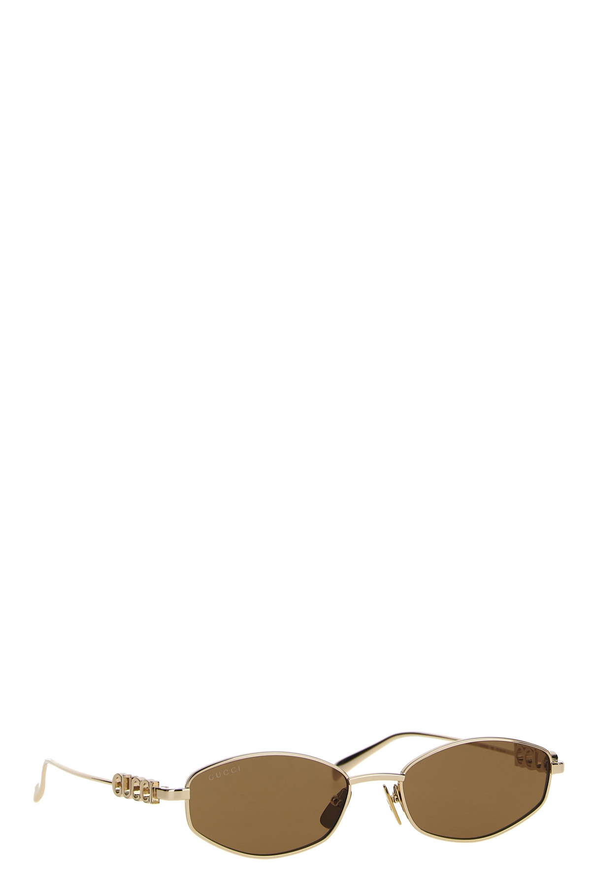 Metal sunglasses with cut-out logo on the temples.