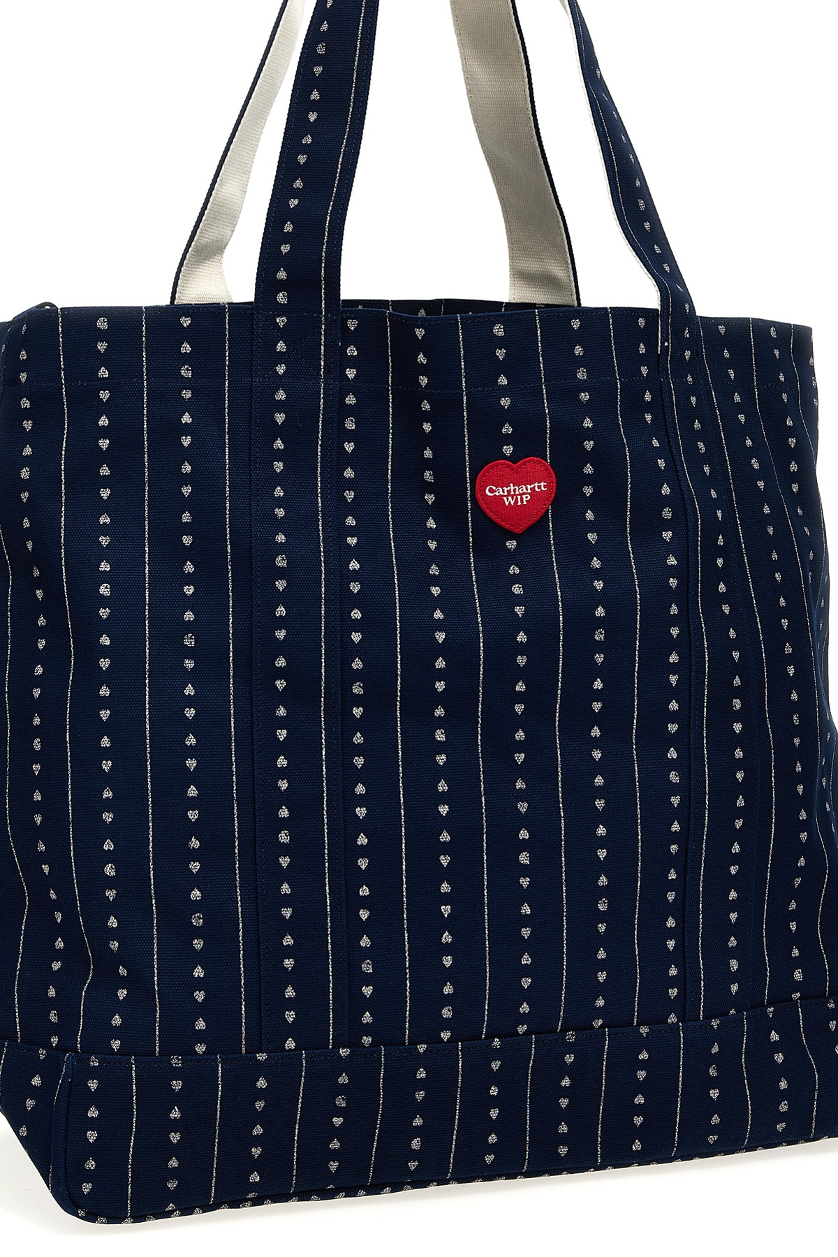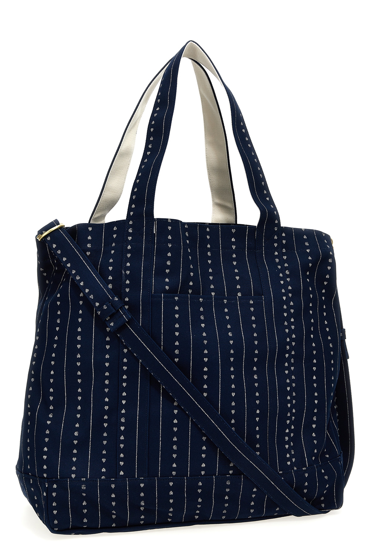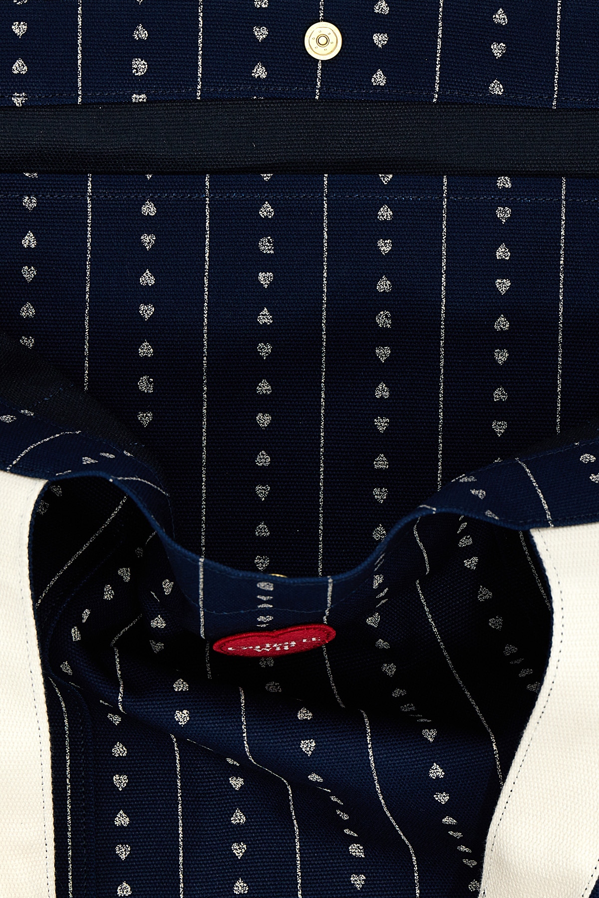 Dearborn cotton canvas Drewe Big Tote shopping bag with wax lining, front logo patch, no lining, double fixed handle, back pocket, snap button closure, adjustable shoulder strap.