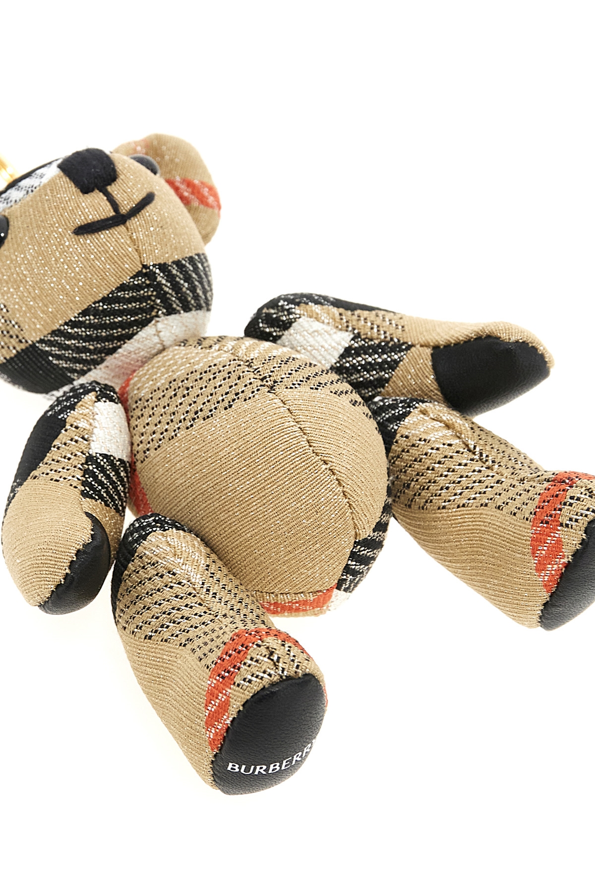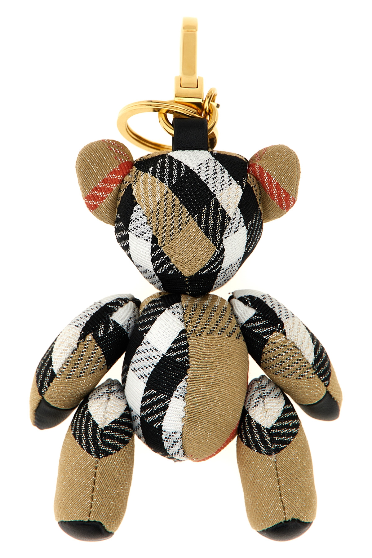 'Orsetto Thomas' bag pendant in Burberry Check fabric with lurex blend and leather details, metal snap hook and ring.