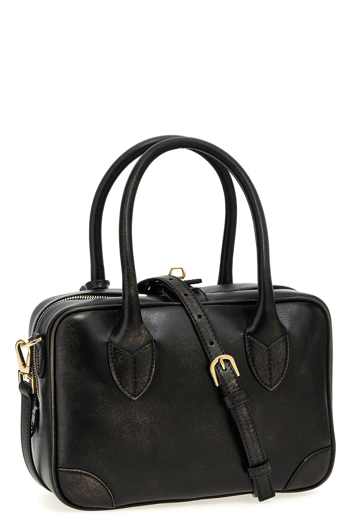 'Vita Bag' vintage-effect leather handbag with front embossed logo, double fixed handle, double closure: zip and key, adjustable and removable shoulder strap.