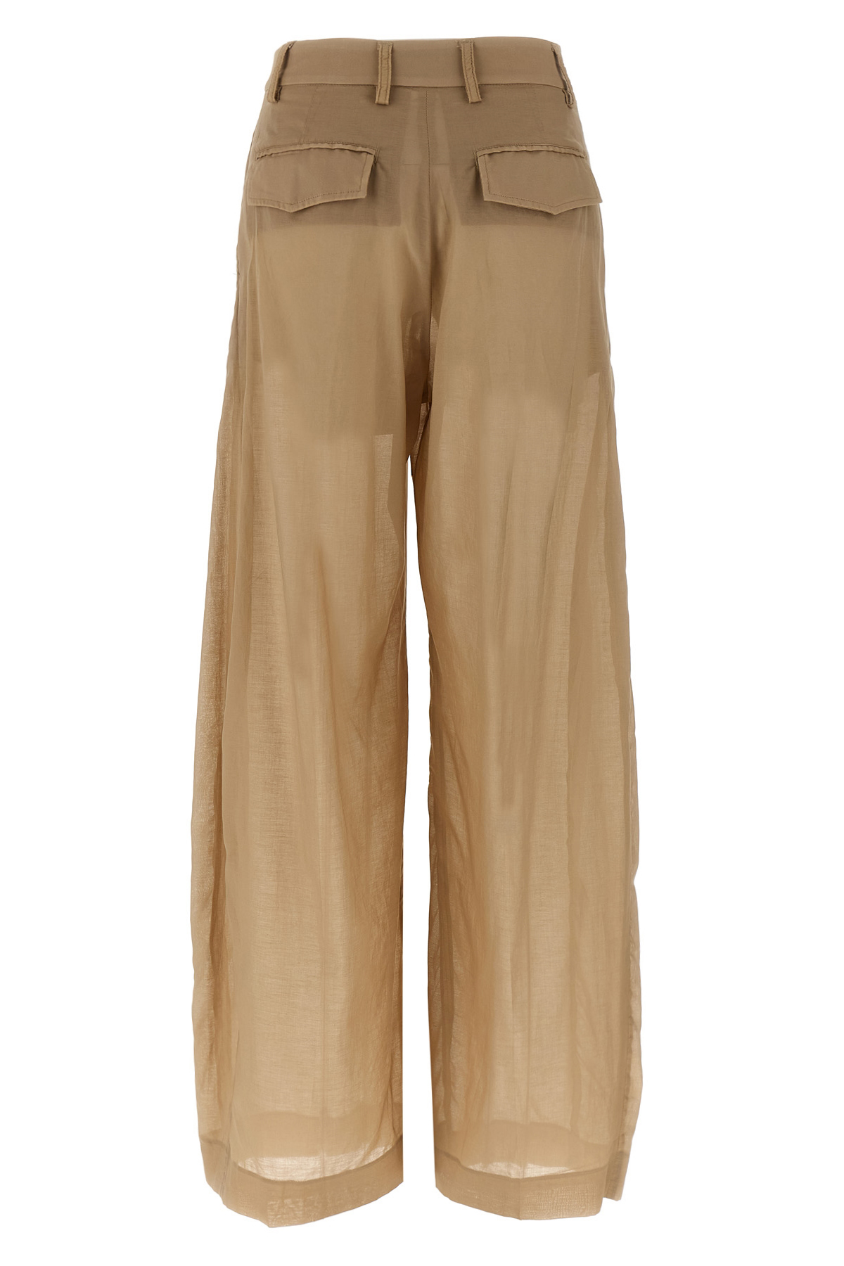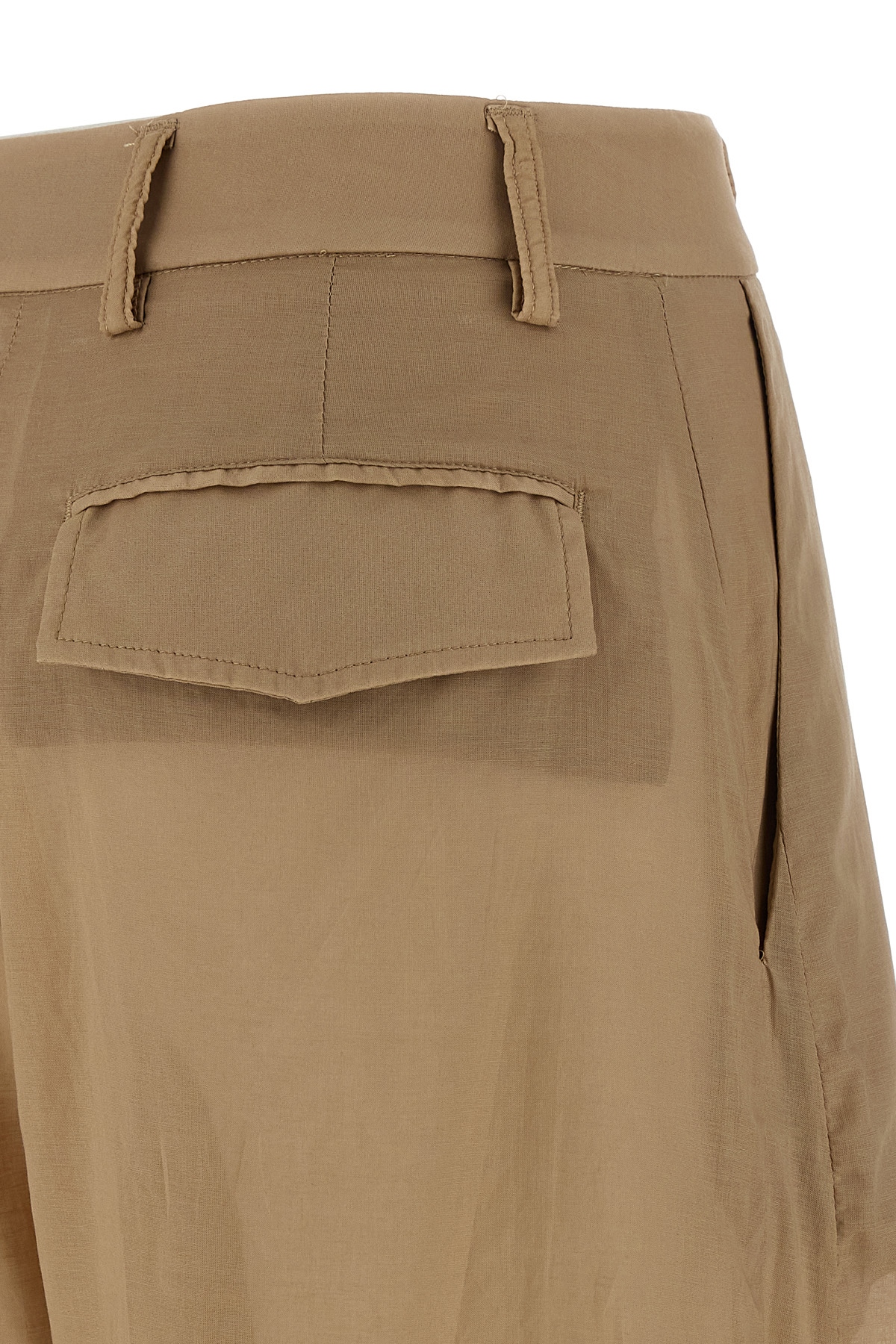 'Chino Short Pleat' semi-transparent cotton blend pants, wide leg style with front zip and hook closure, side pockets.