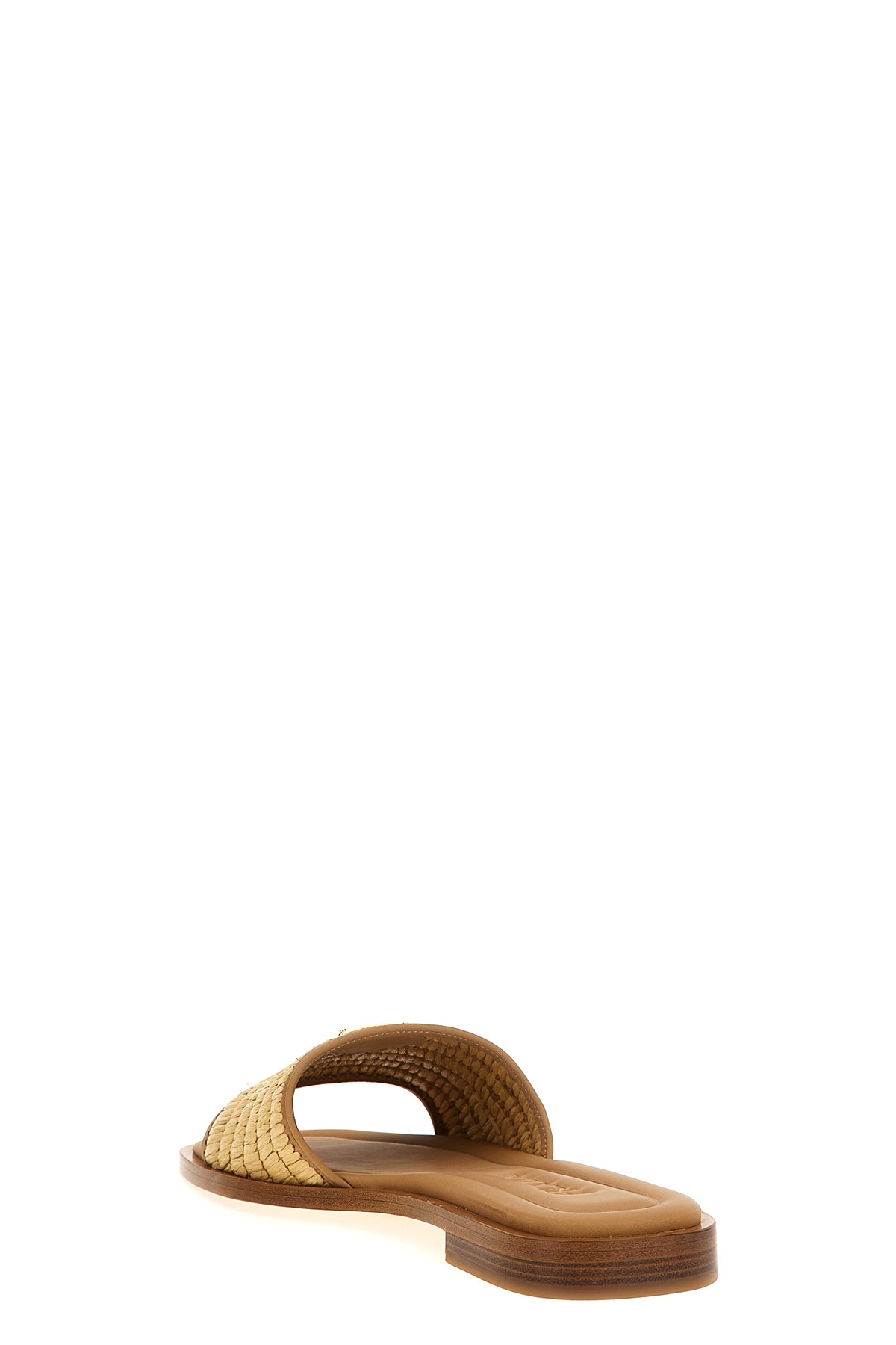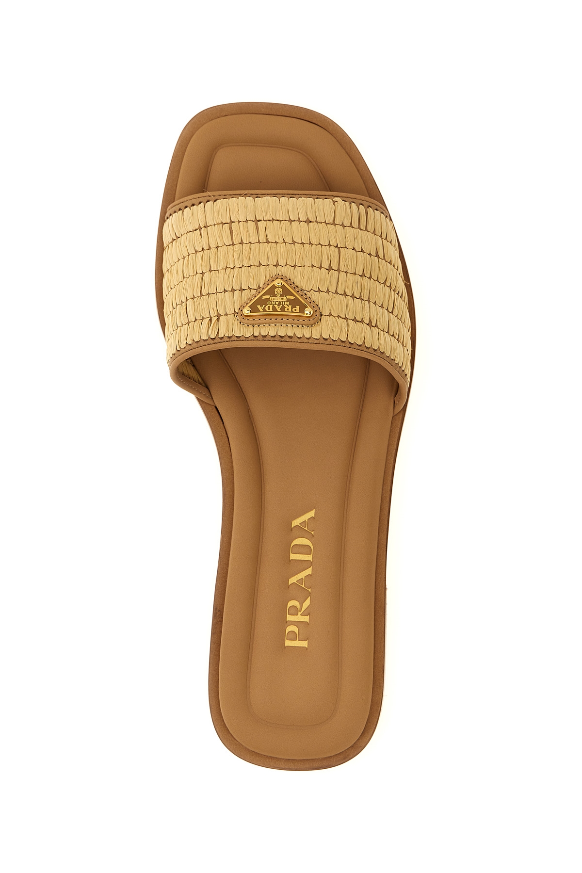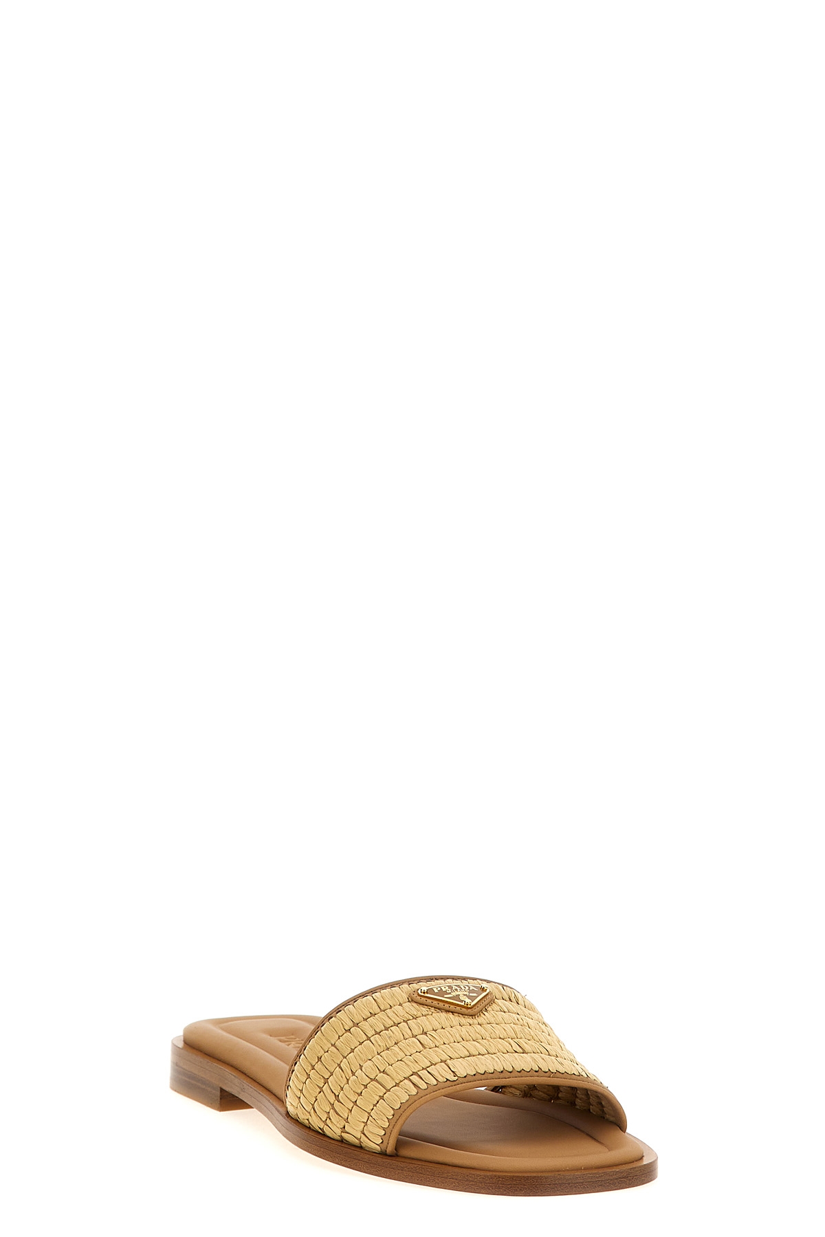 Leather sandals with crochet band, triangle logo in enameled metal on the front, and rubber sole.