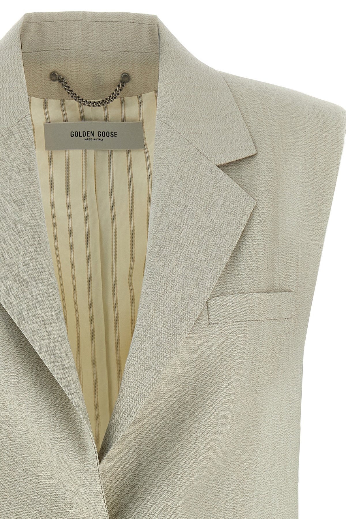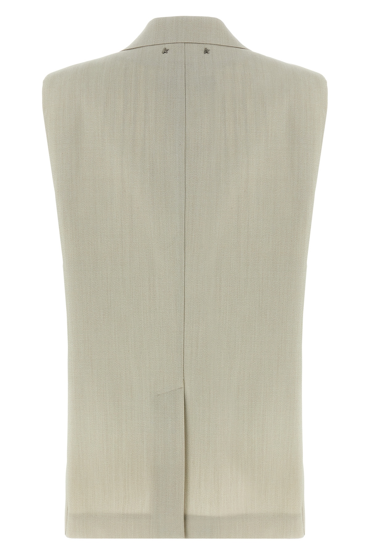 'Nicole' single-breasted vest in wool and cotton blend with button closure, mirror lapels, breast pocket, flap pockets, lining, back split.