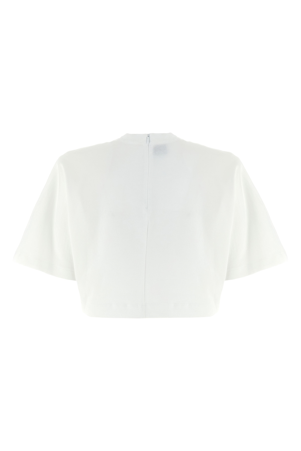 'Manny' pure cotton heavy jersey cropped t-shirt, removable extra padded shoulder straps, crew neck, short sleeves, back zip closure.