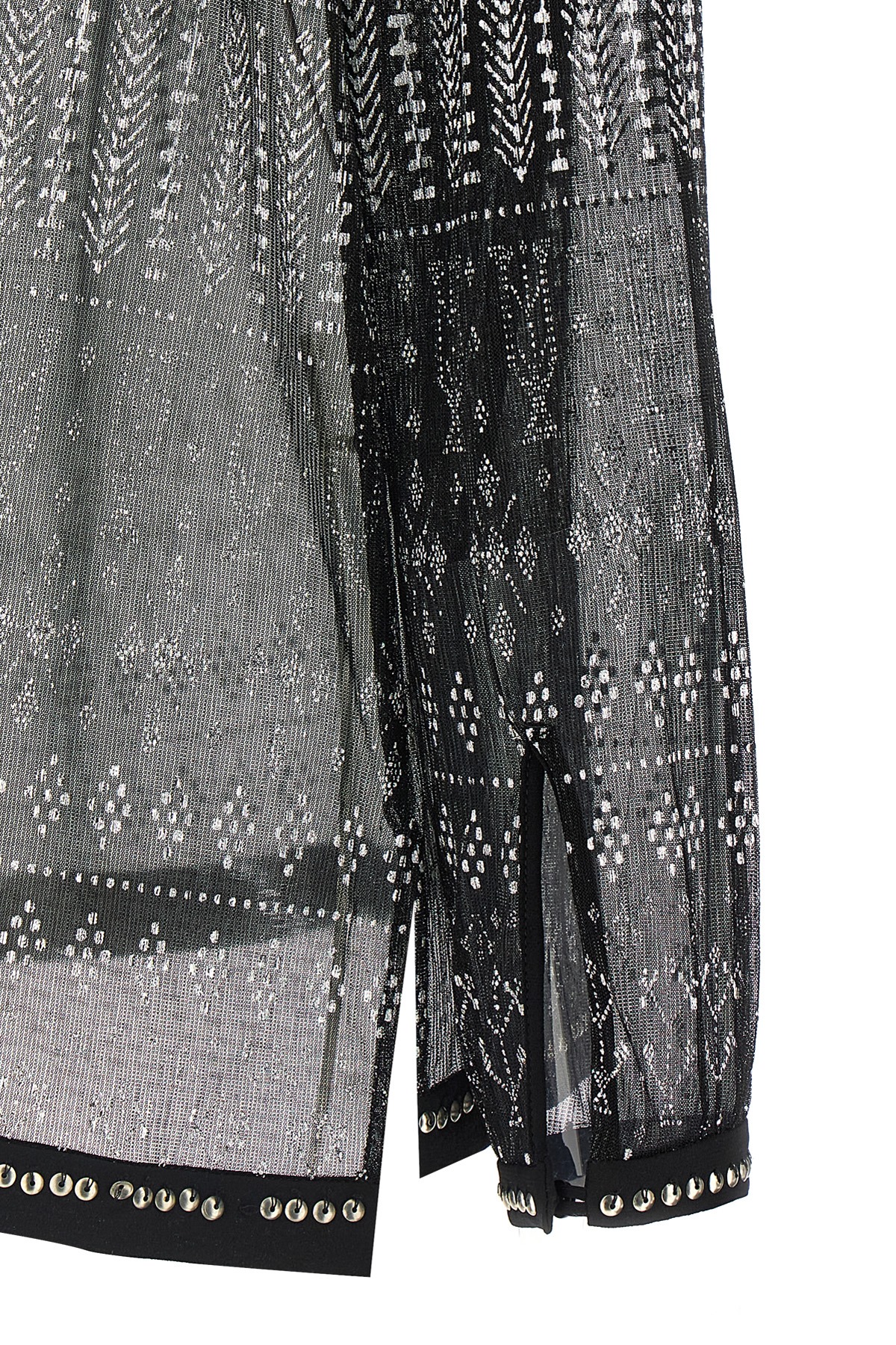 'Nickie' blouse in semi-transparent fabric with lurex embroidery and stud appliques, V-neck with front hook closure, long wide sleeves with elastic cuffs, side slits.