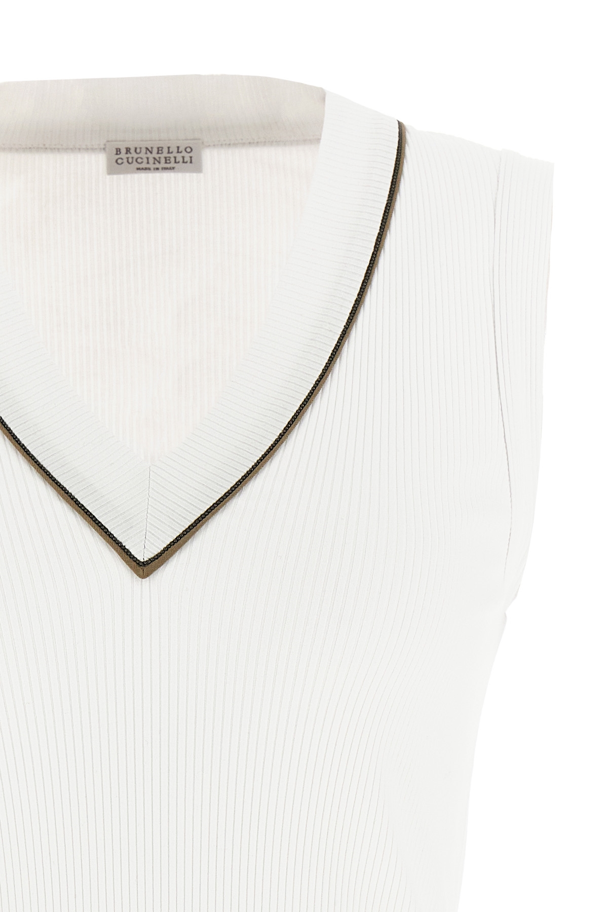 Comfort cotton ribbed jersey top with V-neck with 'Shiny Piping'.