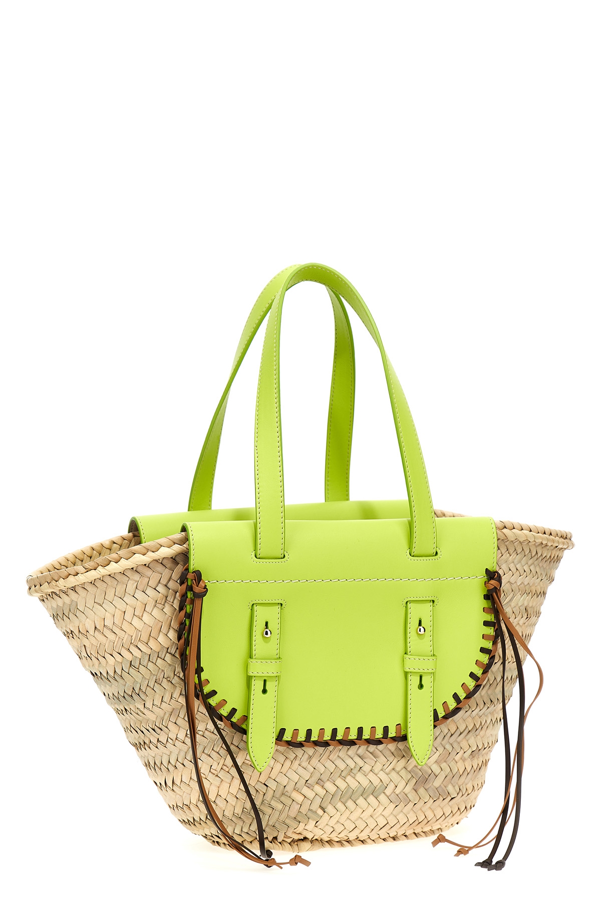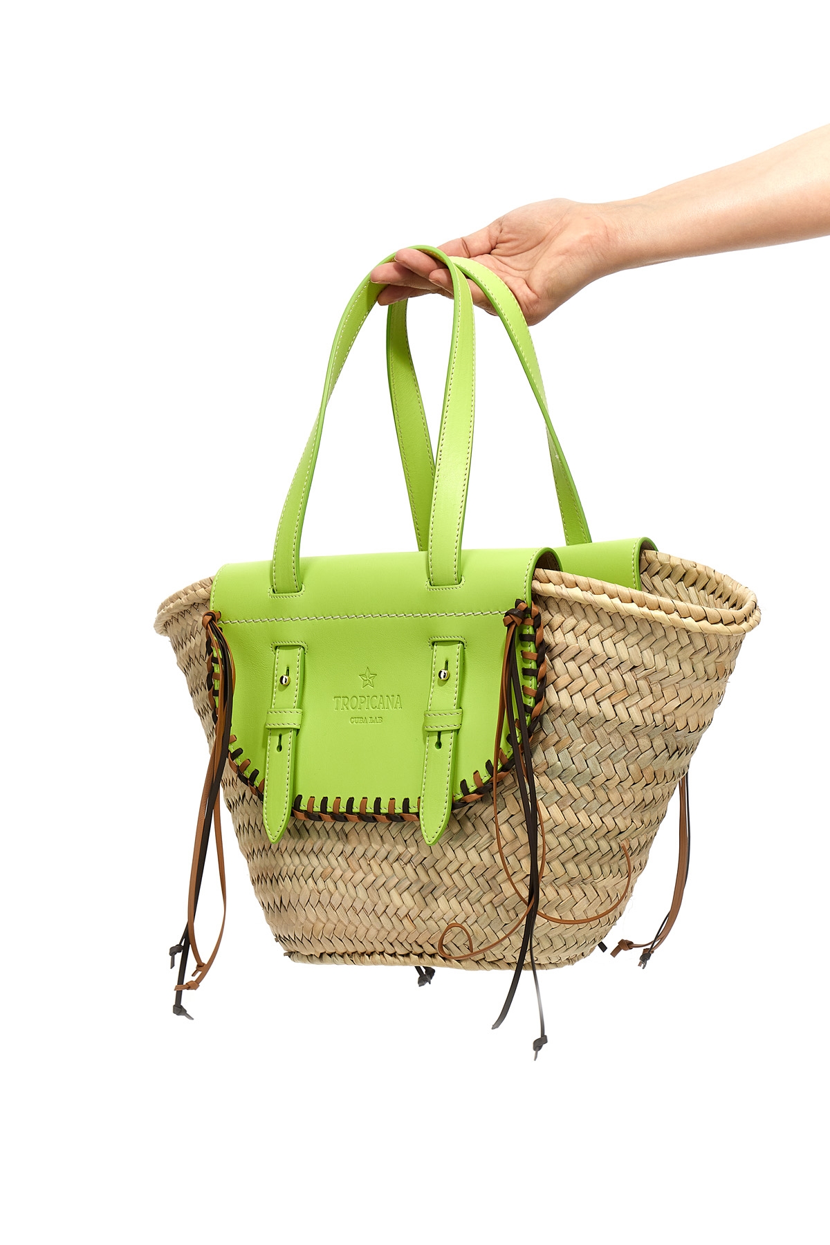 Cuba Lab x SanPa 'Tropicana' shopping bag in straw and leather, double handle, matching inner pouch.