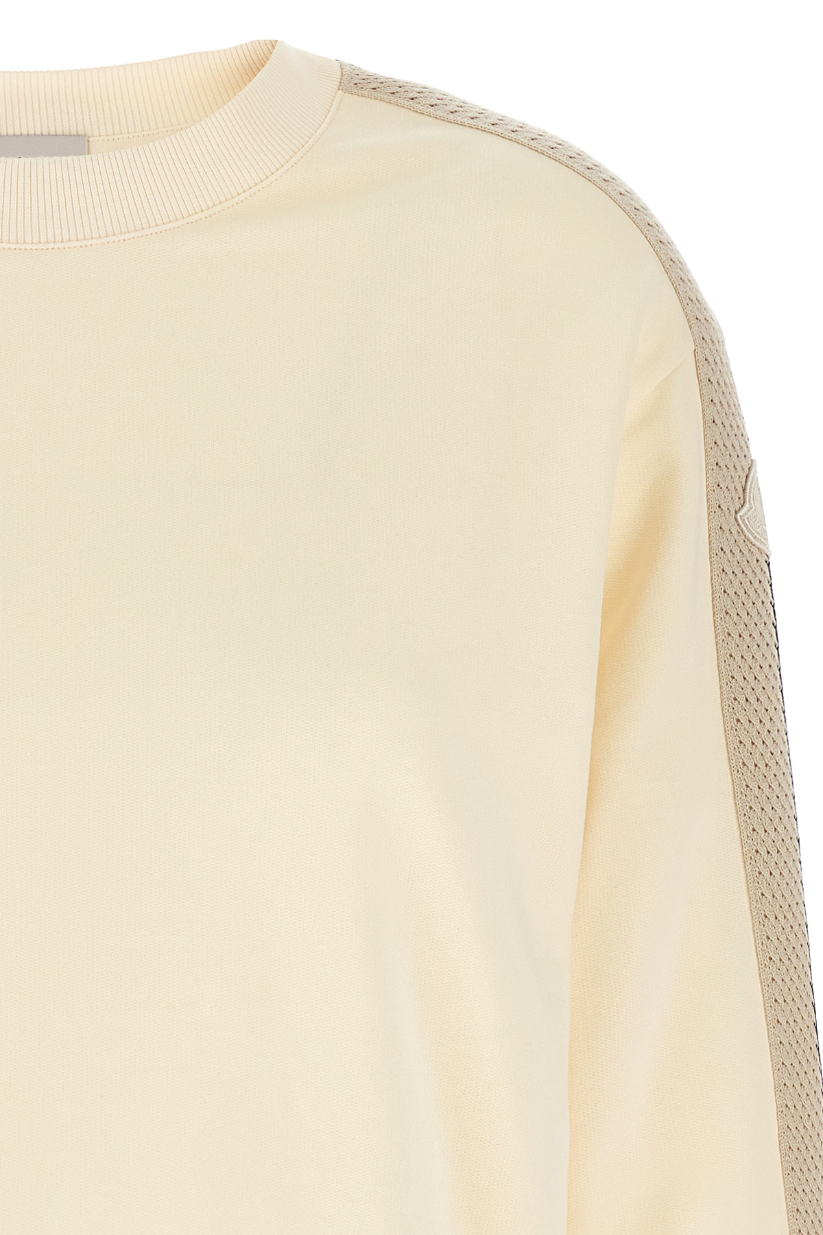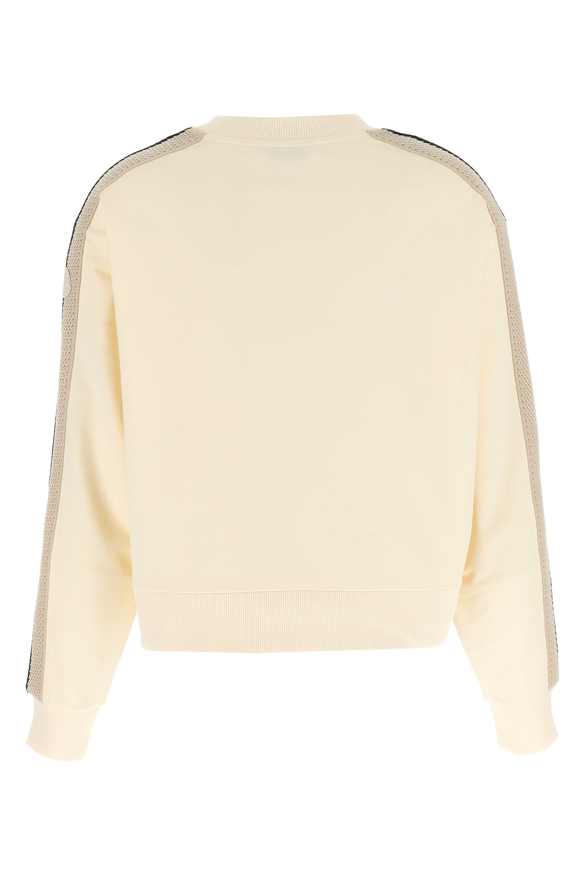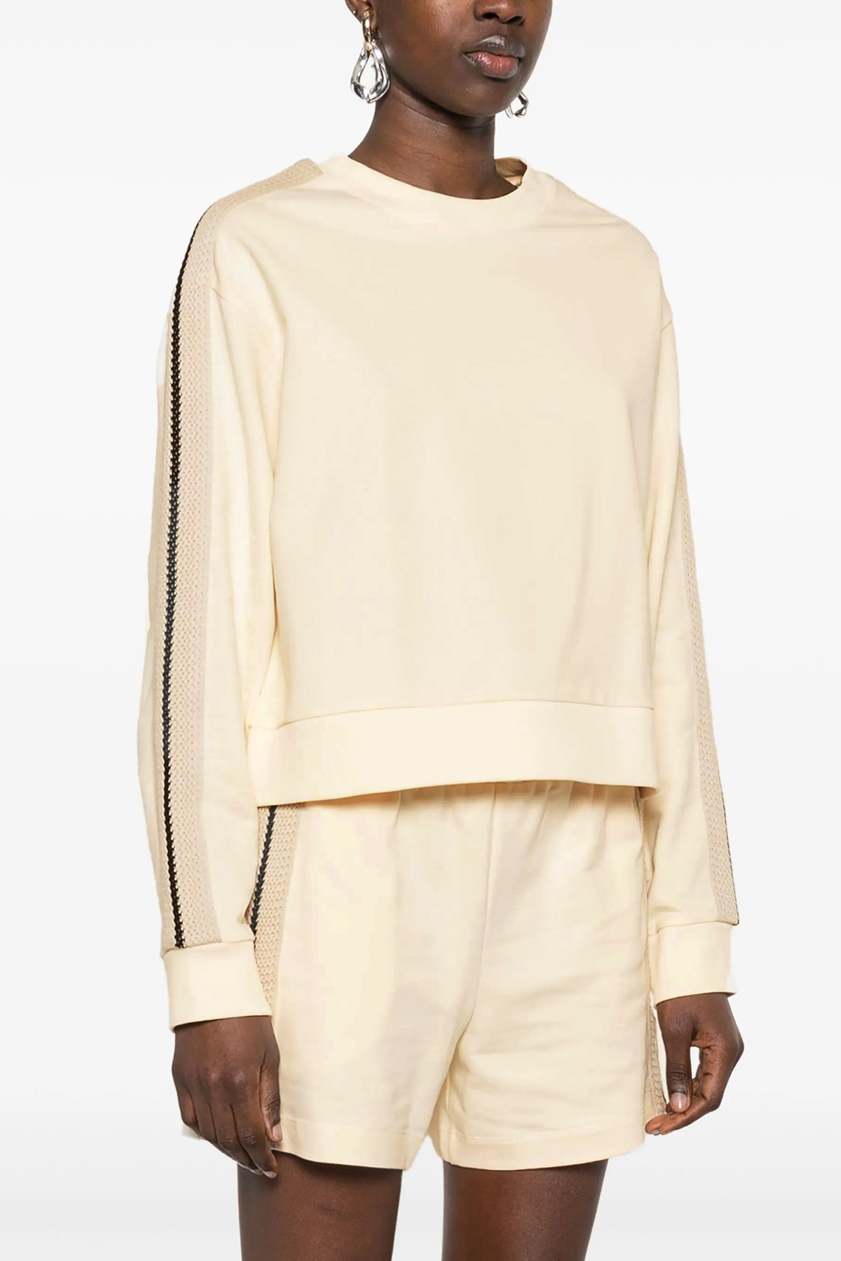 Cotton jersey sweatshirt with crochet details along the sleeves, crewneck, long sleeves with dropped shoulder cuffs and tone-on-tone logo patch applique.