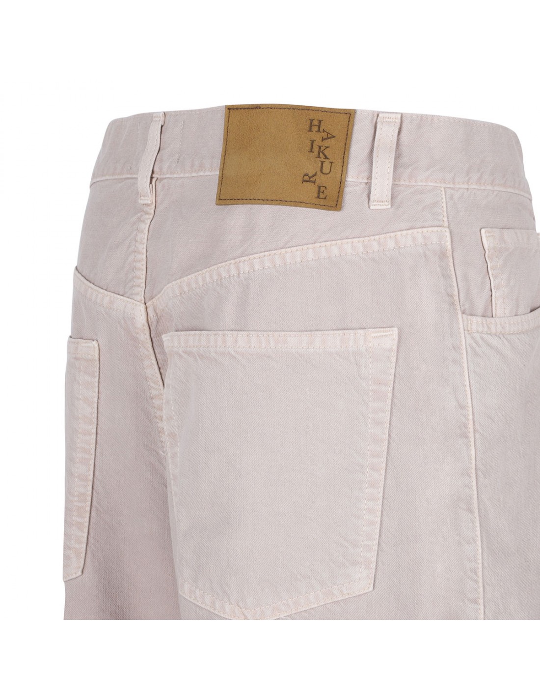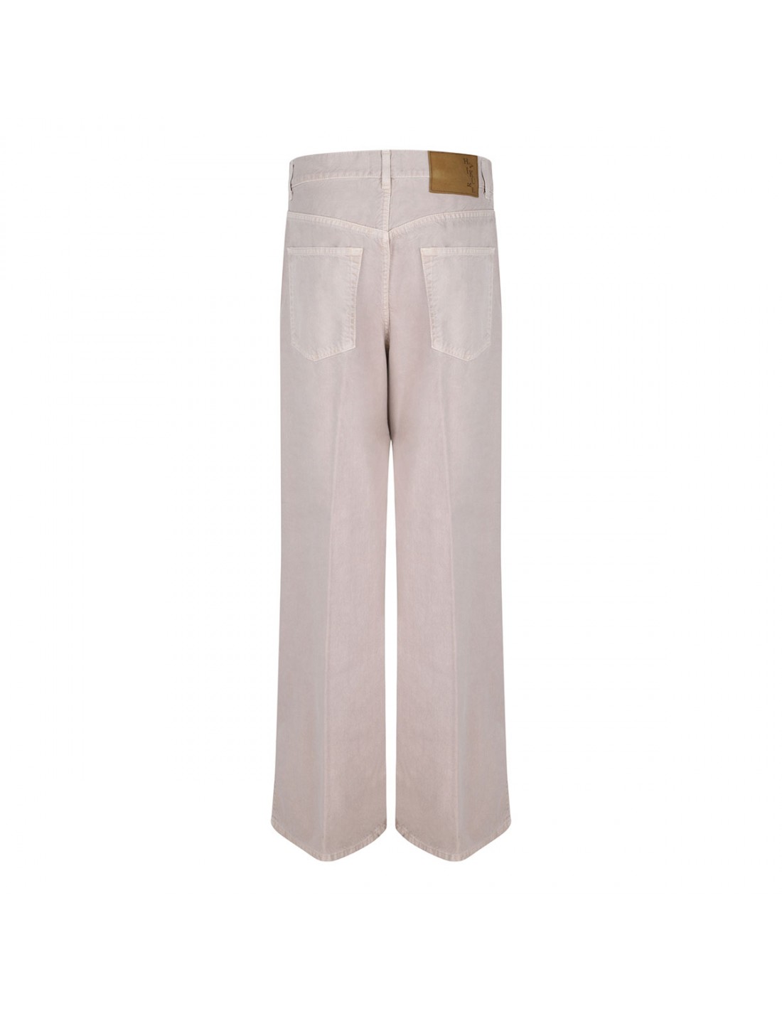 Hazelnut hue cotton denim Candy twill 45 pants from Haikure featuring wide leg, pleats at front, belt loops on the waistband, front zip and button closure, classic five-pocket style, back logo patch.
