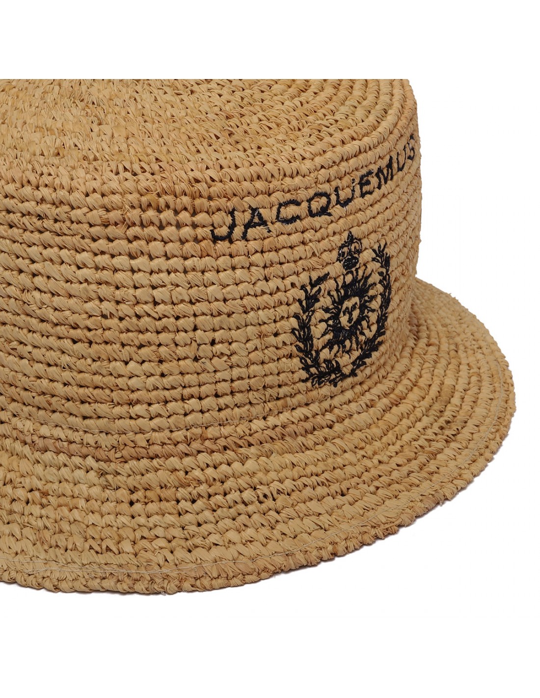 Natural raffia The Pesco bucket hat from Jacquemus featuring Capri logo embroidery, wide stitched hem.?